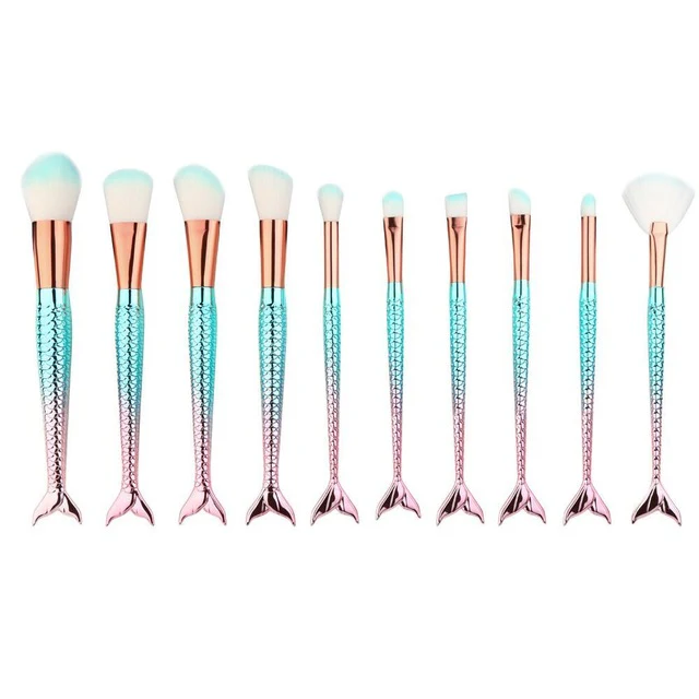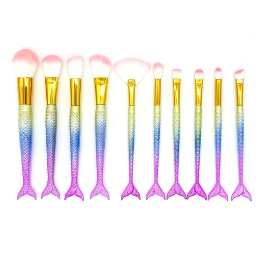 10 Pcs Licorne Sirène Maquillage Ensemble de brosse en Queue de Poisson Poudre Fard À Paupières Pinceaux de Maquillage Contour Cosmétique Mélange Brosses