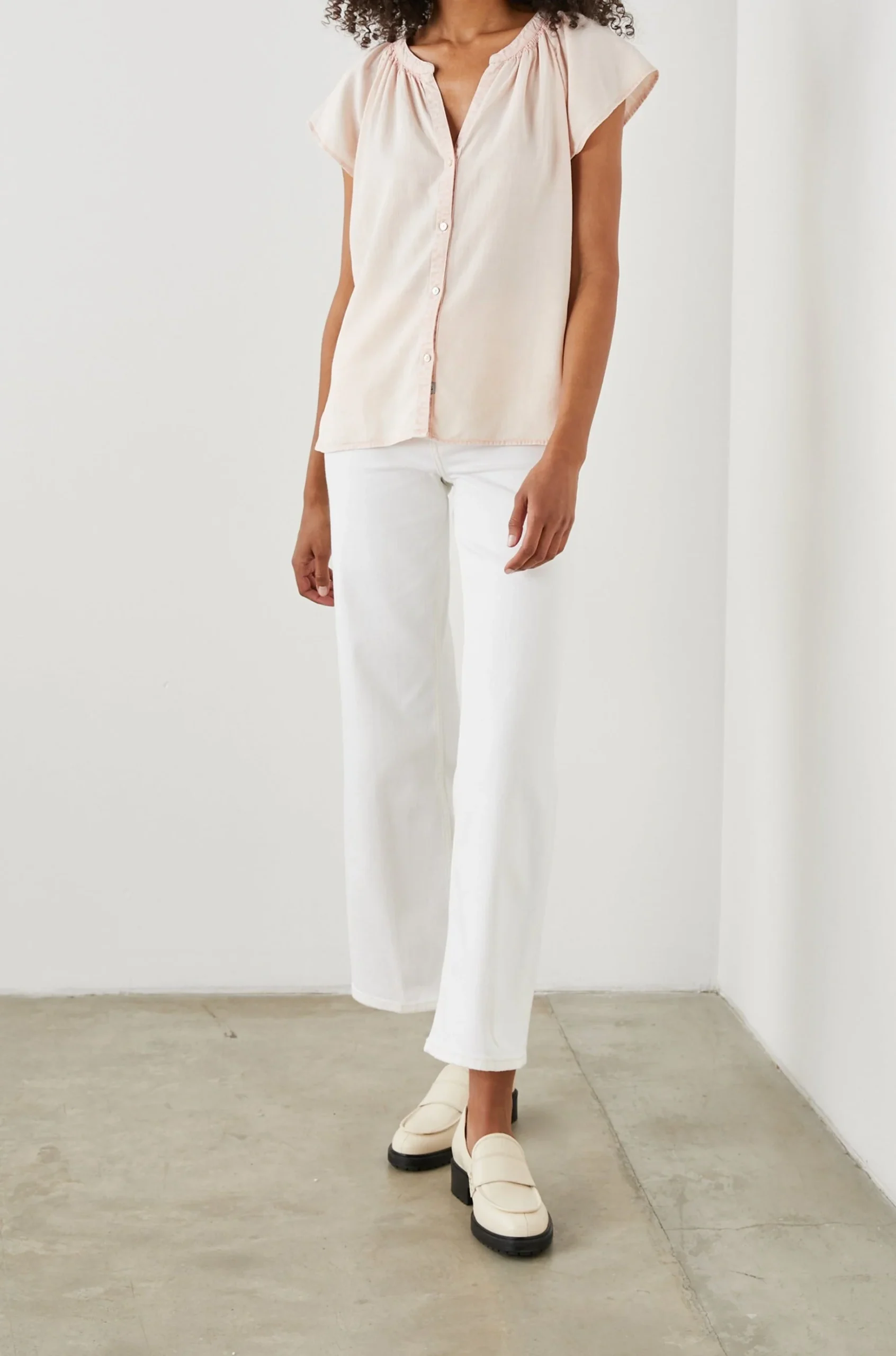 DETAILS Lightweight, short sleeve, pink button down shirt featuring classic fit, v-neckline with smocking, and raglan flutter sleeves. This super soft, lightweight, Tencelâ„¢ shirt features subtle romantic details perfect for everyday wear. 70% Tencel | 30% Linen Imported. CAREMachine wash cold. Tumble dry low. Remove promptly. No bleach. Cool iron if necessary. FITRecommend ordering true […]