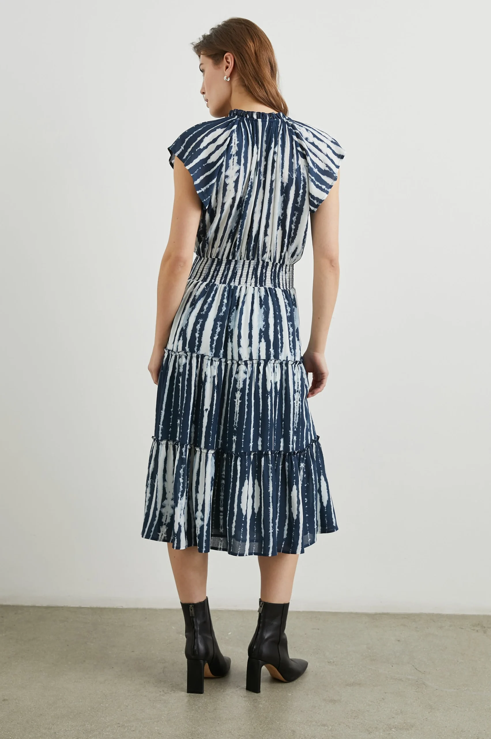Breezy, breathable, and ready to wear anywhere, the Amellia Dress is a seasonless essential. Cut from luxurious linen with a unique print, the Amellia is flattering without compromising on comfort. Eye-catching features include ruffles at the neck and skirt tiers, and waist-smocking for an hourglass silhouette.