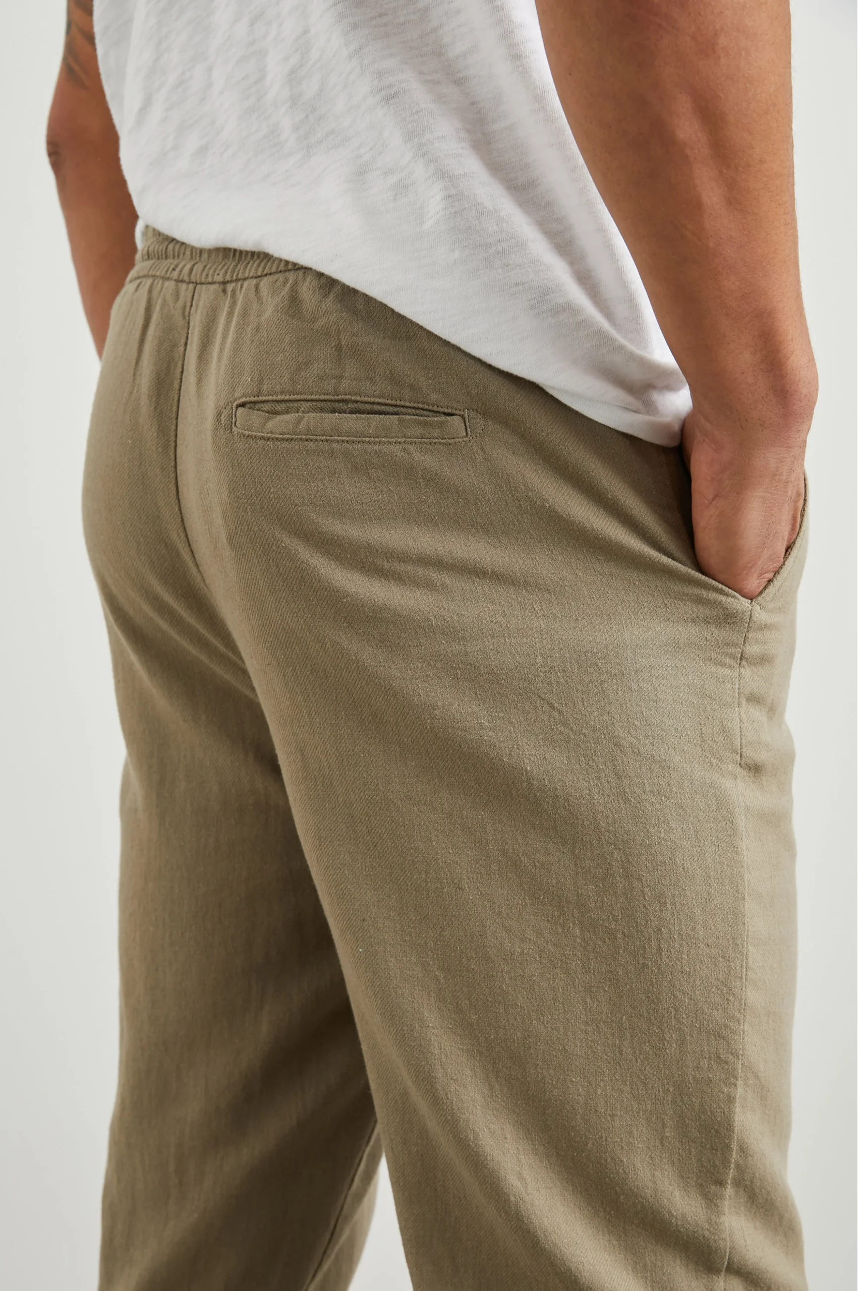 The Callum transforms the lounge pant into the ultimate comfortable slacks. Crafted from breathable cotton-linen twill, it features a slightly tapered, straight-leg fit, an elastic waistband, and an adjustable drawstring for a customizable fit.
