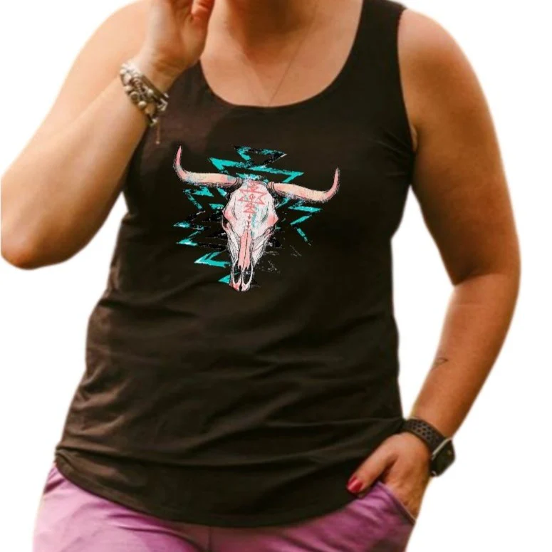 Camisole longue pour femme noire en bambou avec le bas arrondi et les bretelles larges – CRÂNE GÉOMÉTRIQUE