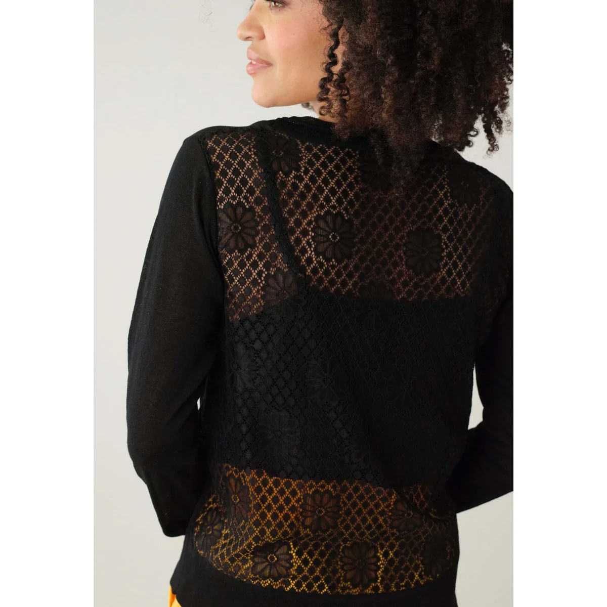 ✨ Ce petit gilet noir, c’est un peu comme un secret bien gardé… Devant, il joue la carte de la simplicité avec son col V délicat et sa maille fluide. Mais dès que vous tournez le dos… wahou. La dentelle se dévoile, subtile et envoûtante, laissant deviner juste ce qu’il faut.