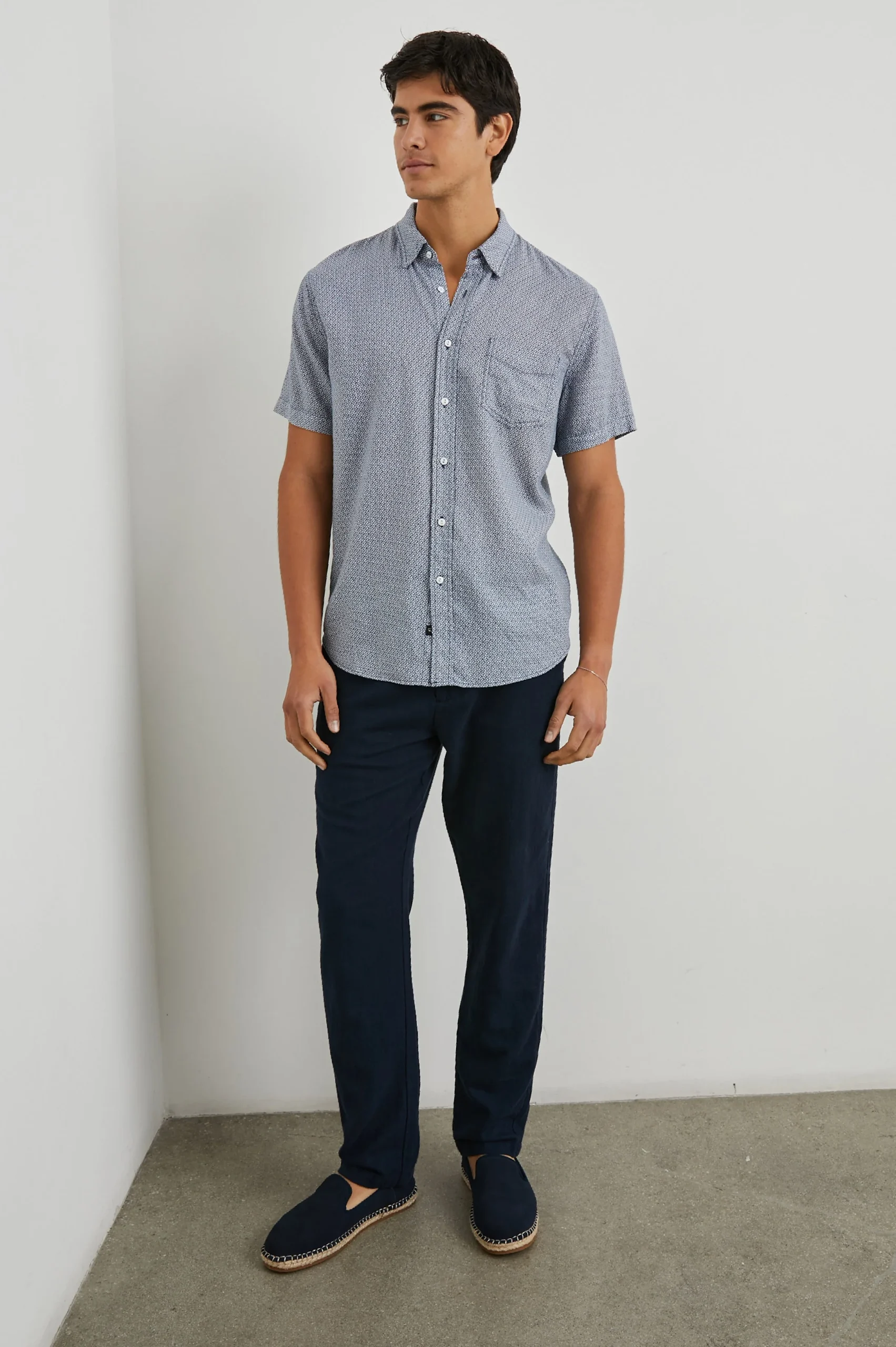 The Carson is an ultra comfortable, short sleeve button-down shirt featuring a single patch pocket at the chest. Made from a lightweight linen blend, the laidback style of the Carson makes it perfect for any casual occasion.