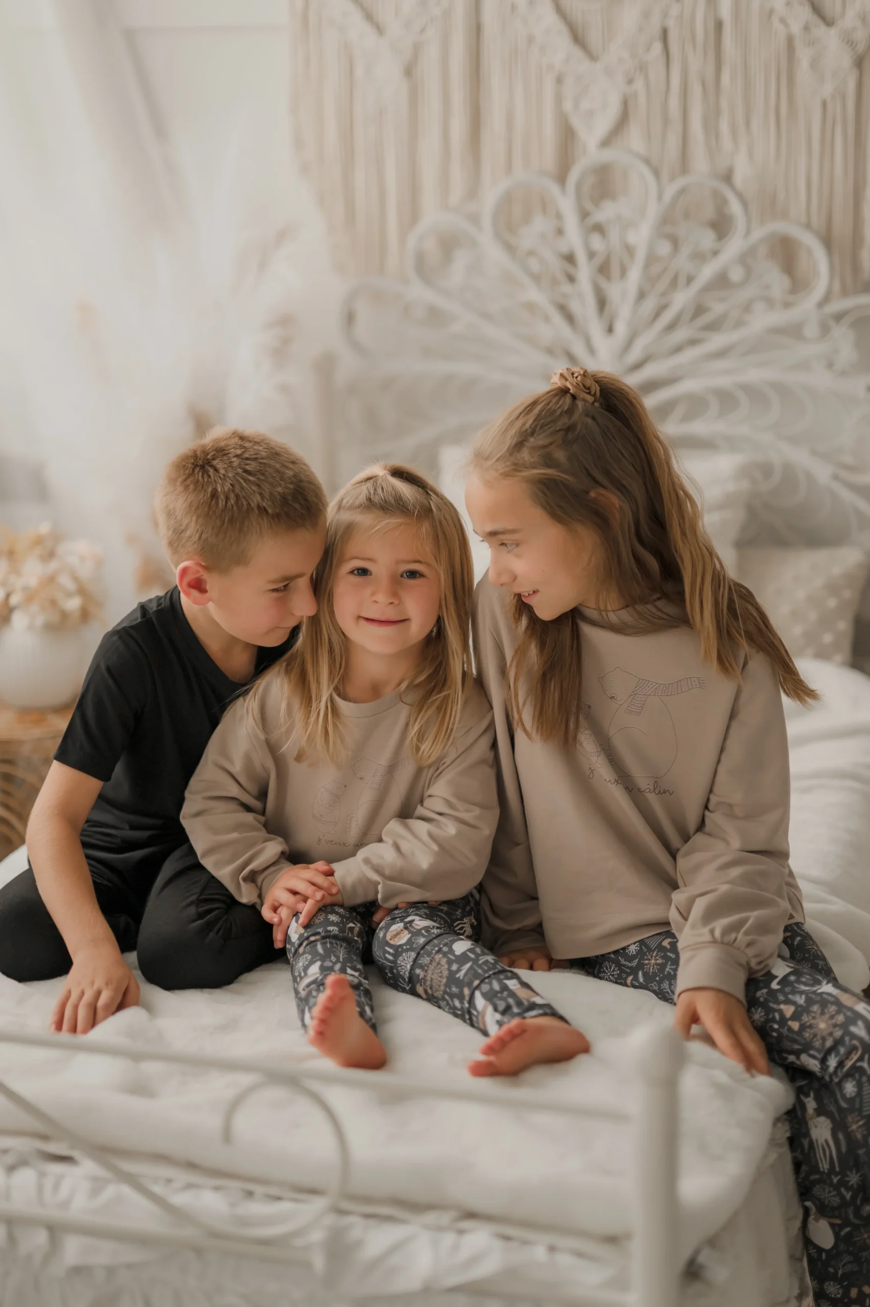 Chandail Crewneck amande pour enfant et junior à manche longue en bambou