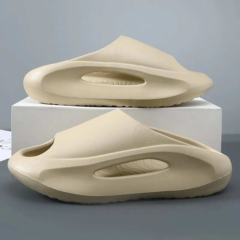 Claquettes unisexe en forme de chausson confortable et antidérapant. Cette nouvelle matière flexible réduit la fatigue et améliore la circulation sanguine au niveau des chevilles.
