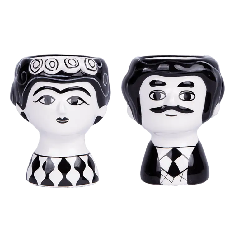Démarrez la journée avec une touche d’originalité grâce à ce set de coquetiers au design graphique noir et blanc, parfait pour apporter une note de bonne humeur à vos petits-déjeuners. Inspirés d’un univers rétro et joyeux, ces deux personnages, notamment le célèbre Carlos Noir, incarnent à la fois le charme et la fantaisie. Leur allure espiègle transforme un simple repas en un véritable moment de plaisir visuel et gustatif, en apportant une touche de légèreté et de convivialité à votre table.