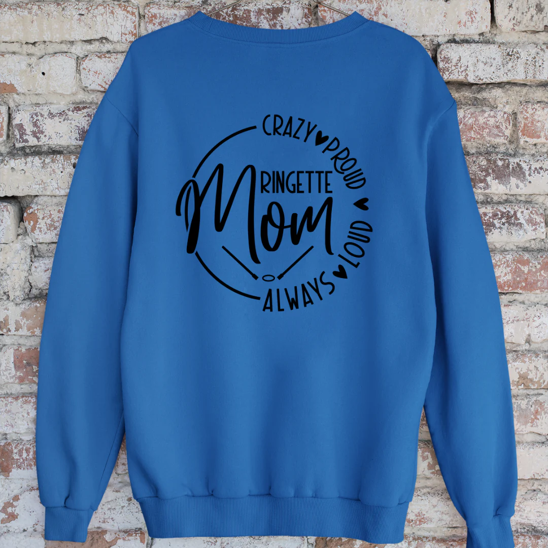 Crewneck en bambou fleece – couleurs variées – Impression Ringuette Mom – Crazy – Proud – Loud – Always