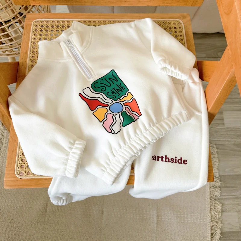 Faites briller le quotidien de votre petit soleil avec cet ensemble sweat + pantalon ultra confortable 🌈
