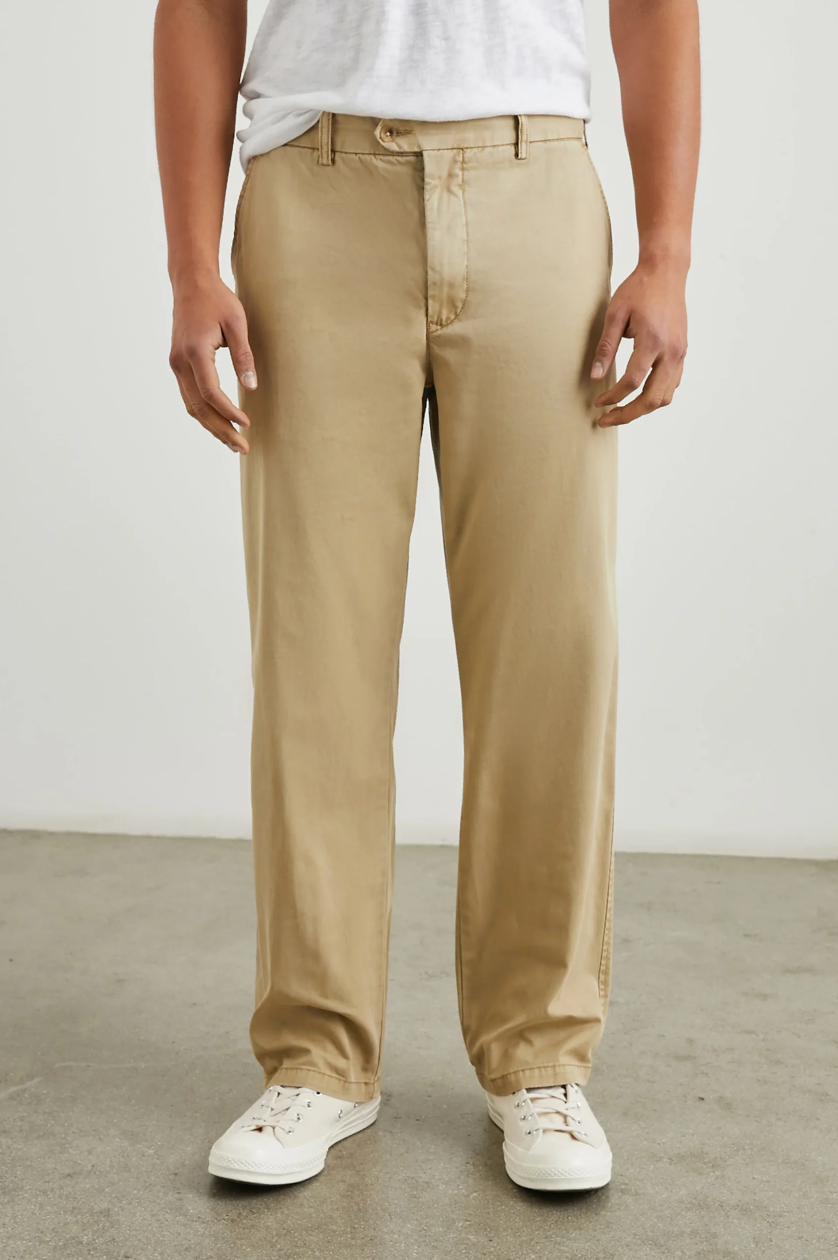 The Garrett is a more relaxed take on the essential chino. Crafted from soft vintage cotton for the perfect ‘worn in’ feel, this pant is designed for endless comfort and versatility.