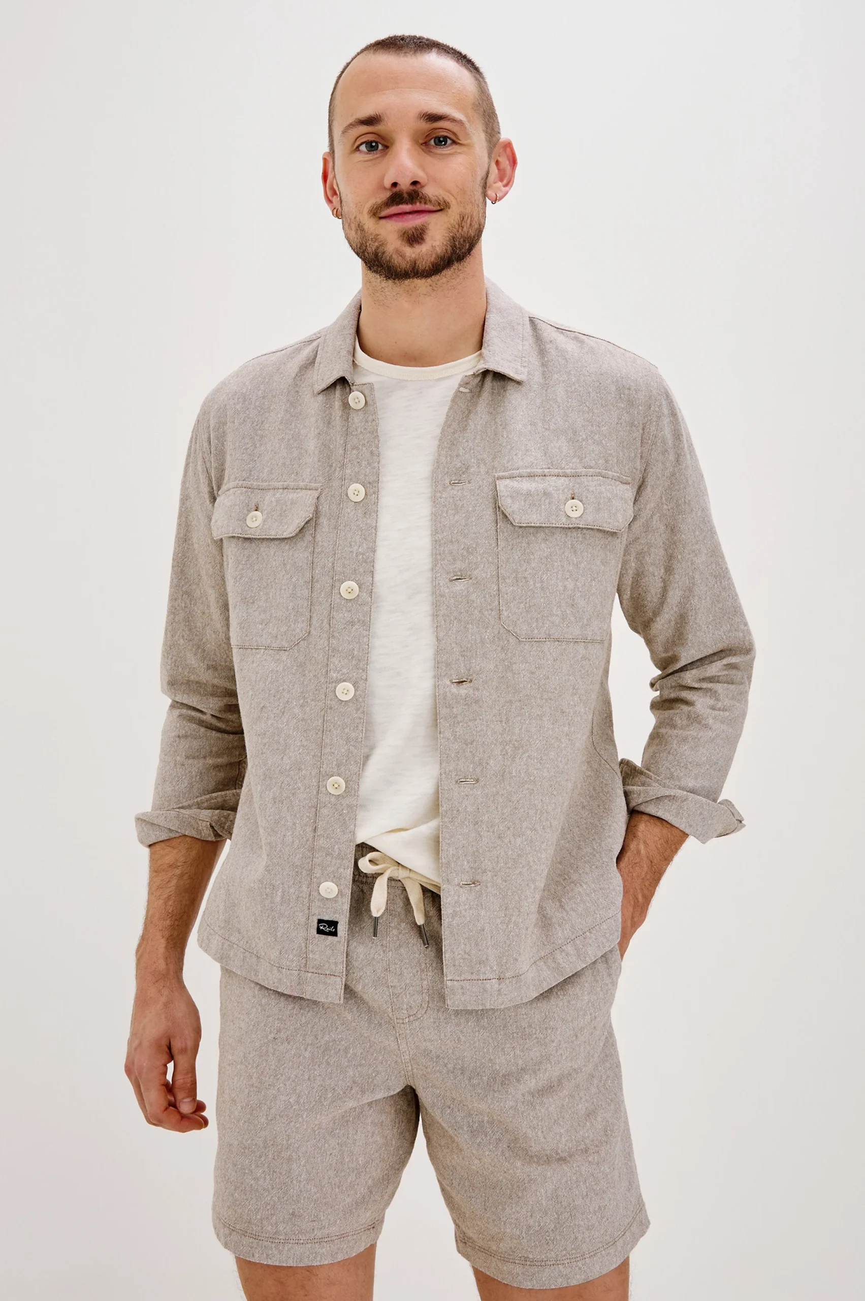 The Hayes is an essential shirt-jacket made for any season. Crafted from a durable linen-cotton slub for subtle texture, it features chest patch pockets for added character. Wear it all year long—layered up or on its own.