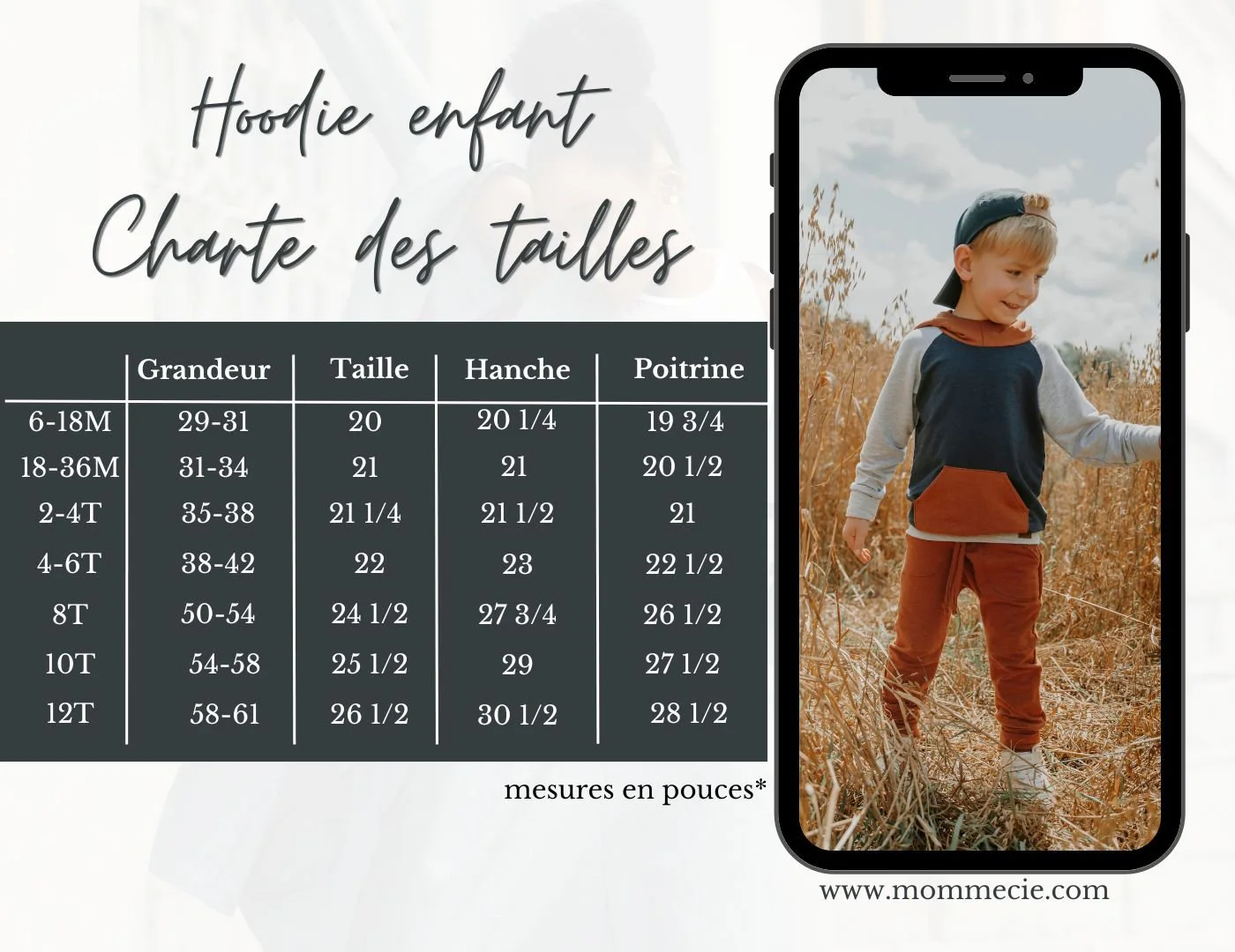 Le hoodie a une capuche spacieuse pour garder les oreilles de votre enfant bien au chaud, et une grande poche kangourou à l’avant pour ranger des petites affaires. Les manches sont longues et côtelées, facilitant la liberté de mouvement et donnant un ajustement confortable.