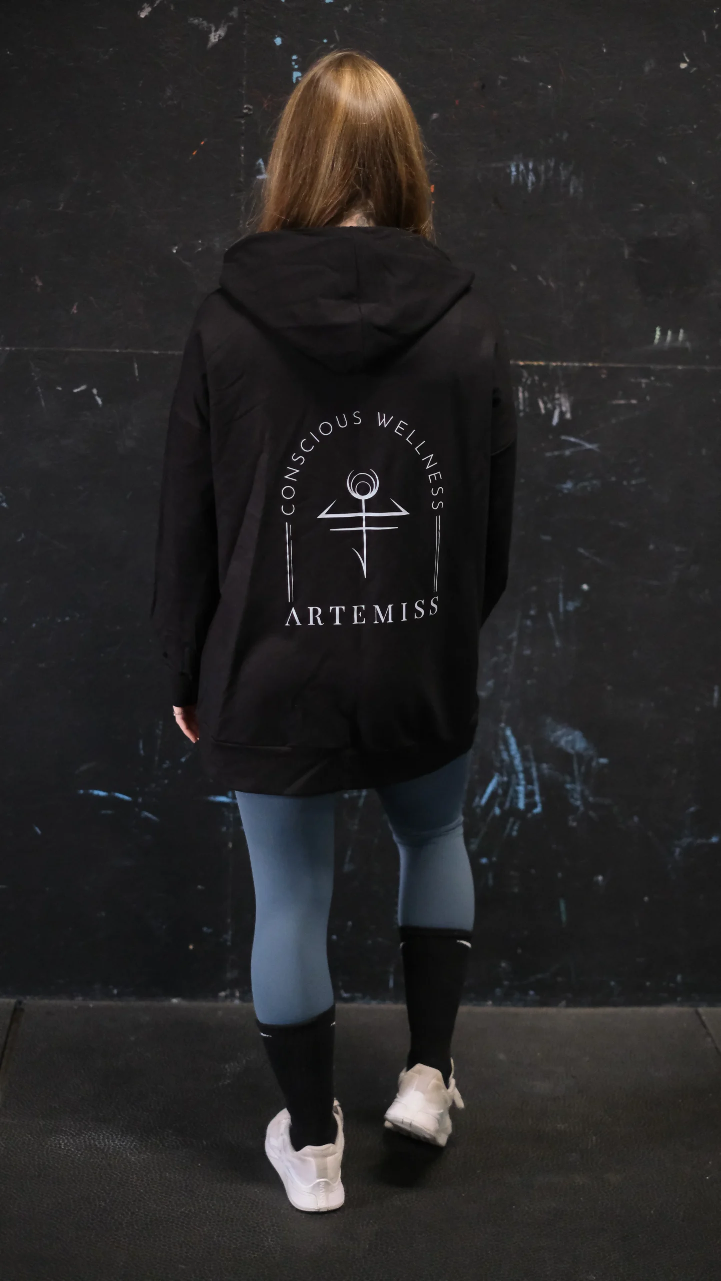Hoodie oversize manche longue en bambou noir avec bande à la taille pour femme Artemiss