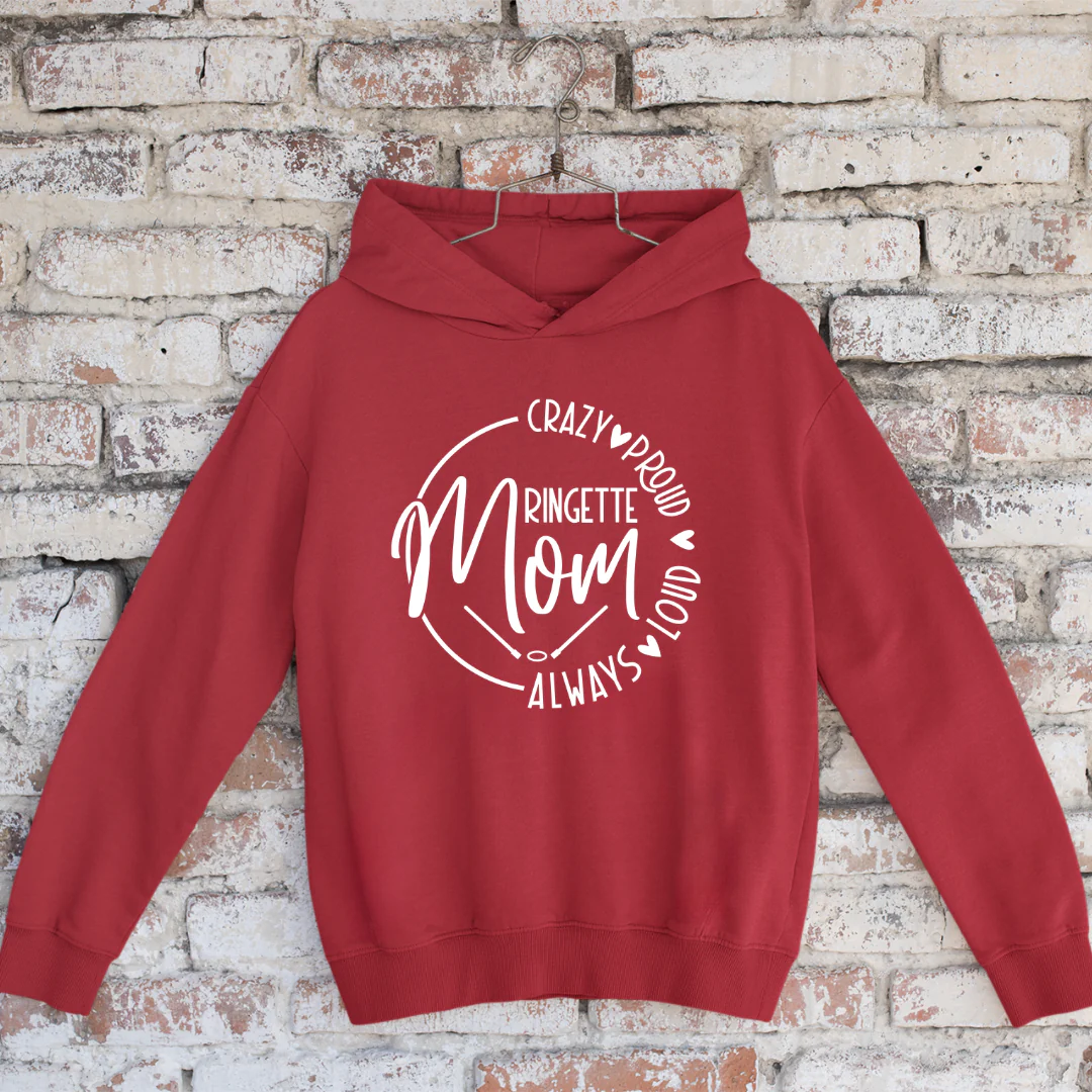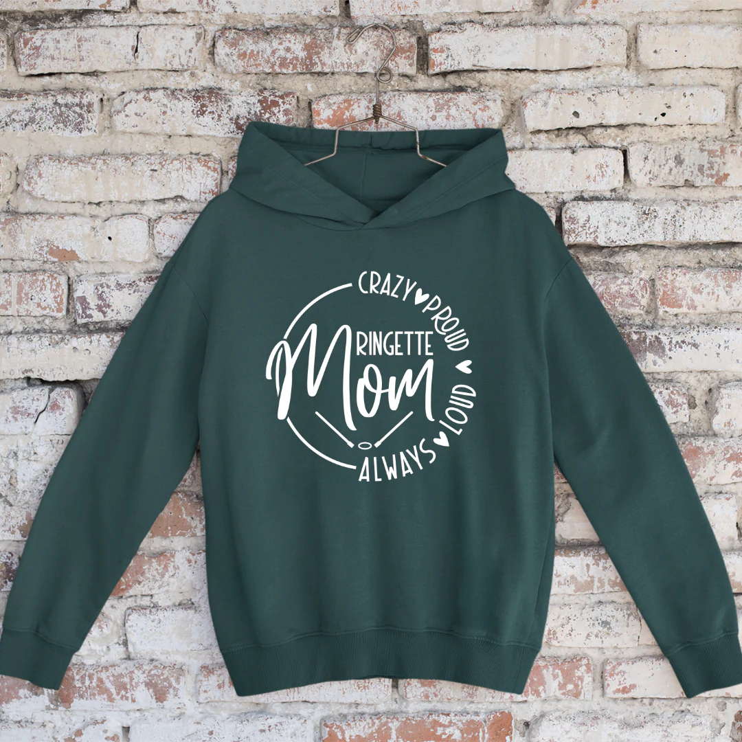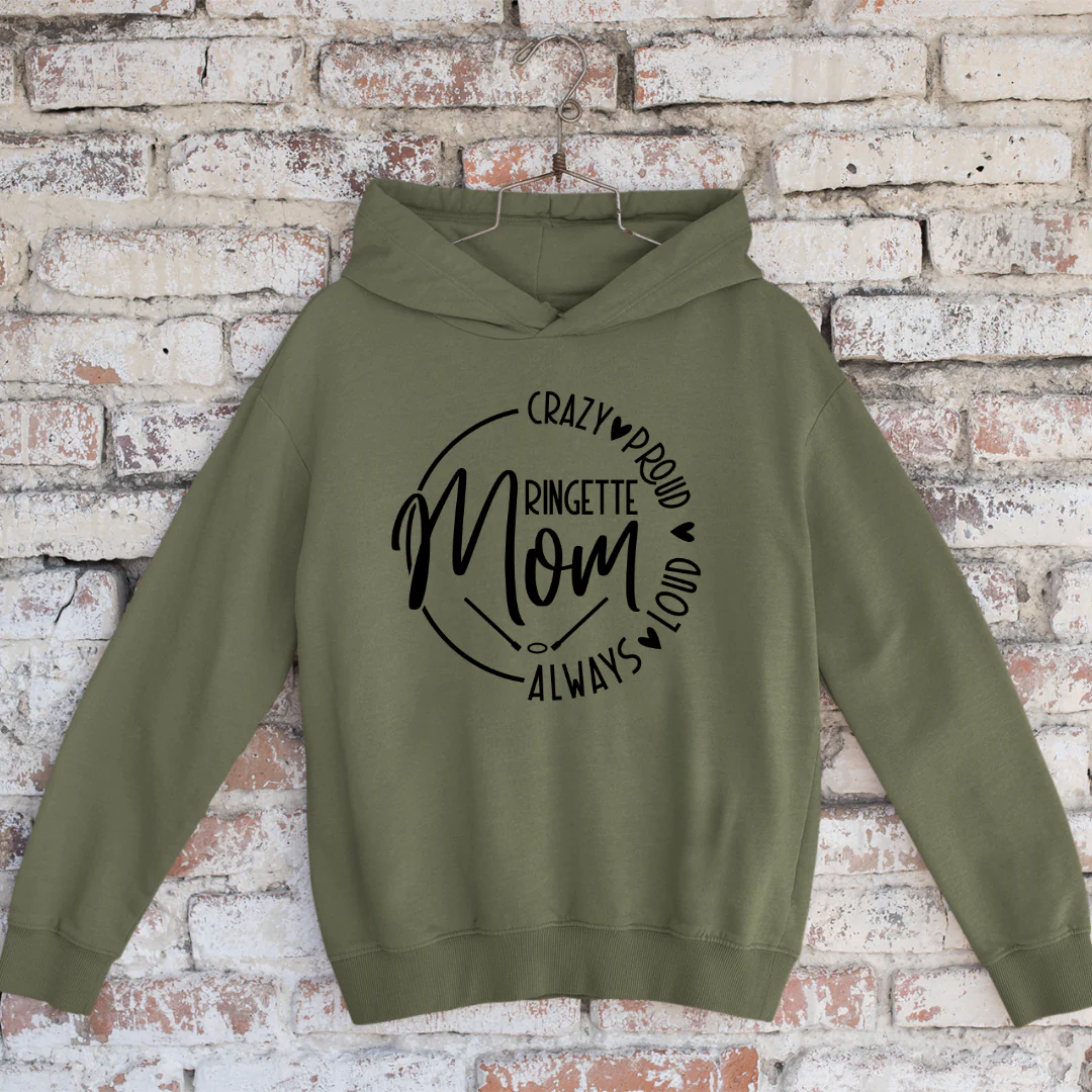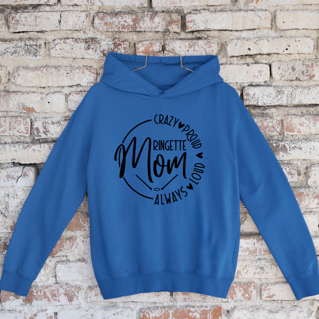 Hoodie unisexe en bambou fleece – couleurs variées – Impression Ringuette Mom – Crazy – Proud – Loud – Always