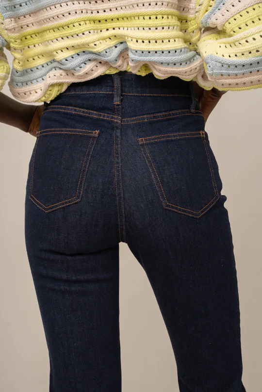 Avec sa coupe regular Flare, légèrement évasé à partir du genou, ROMANE évoque une époque révolue tout en restant résolution moderne avec sa taille haute.