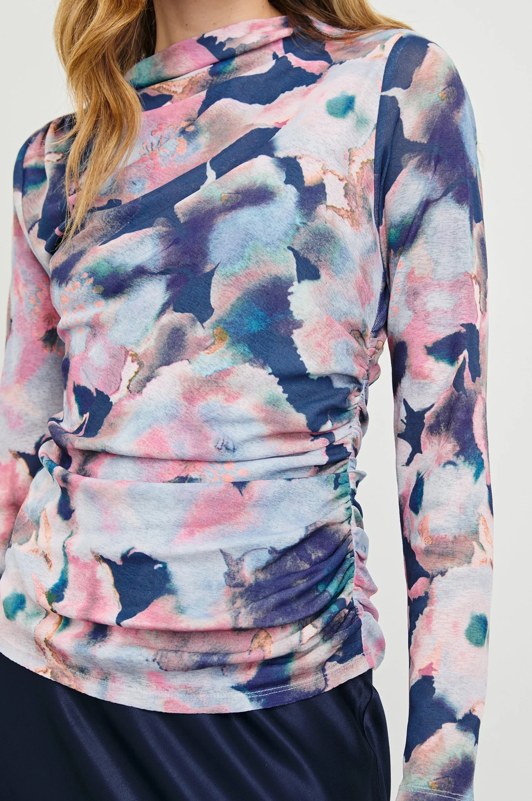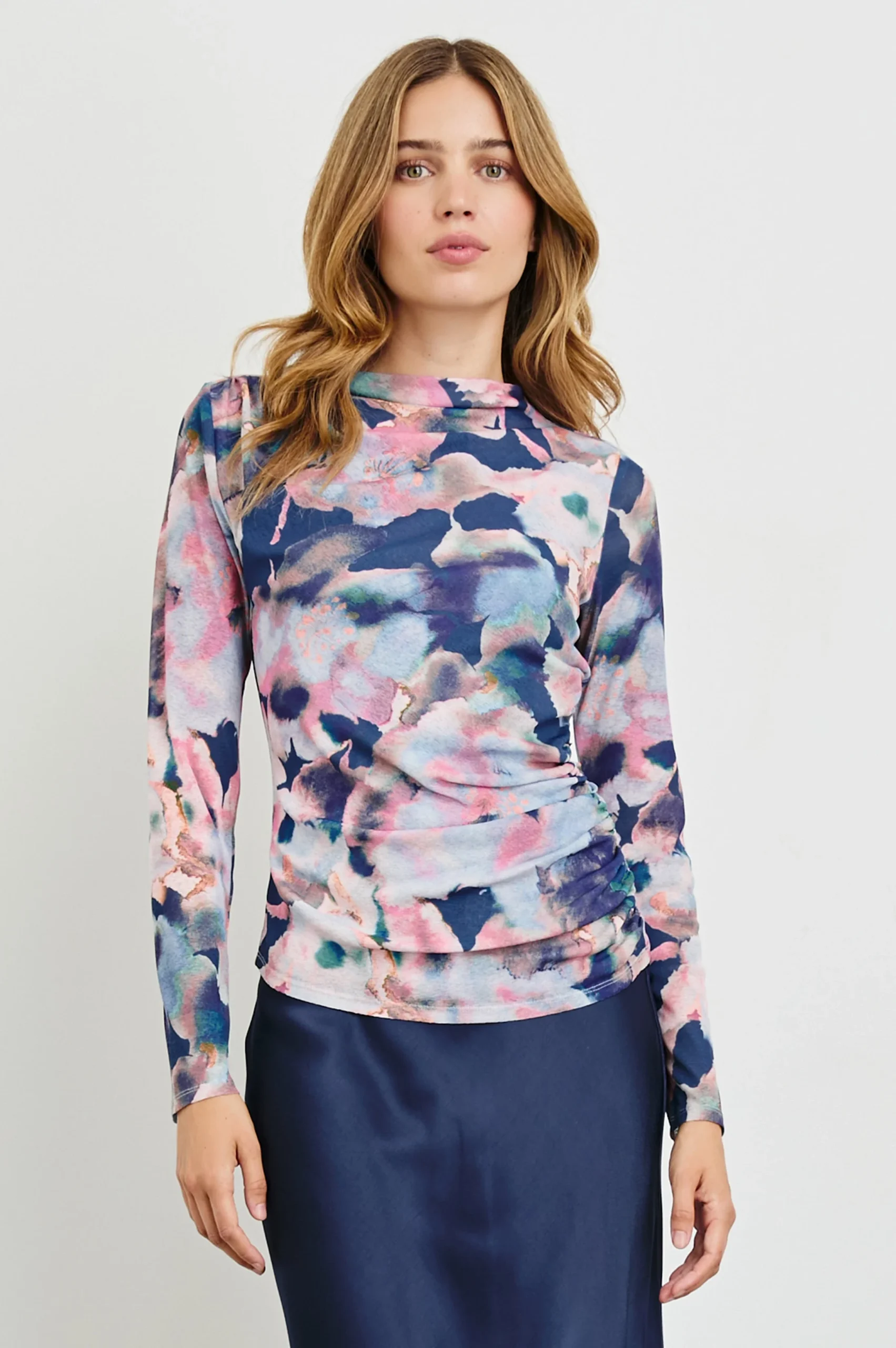 Introducing the new must-have top. Call on the Joelle year-round to elevate any outfit, with its lined fabrication, mock-neckline and shirring details to flatter your form. Wear day, night or layer it under your favorite blazer, the Joelle can do it all.