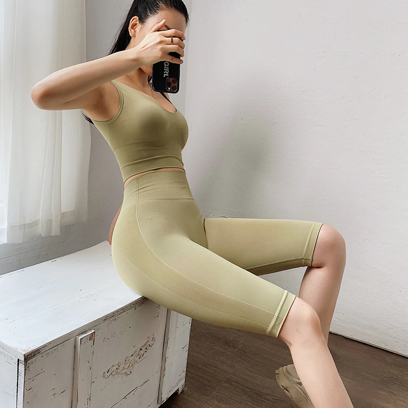 Pantalon de fitness taille haute à hauteur de hanches Pantalon à cinq points extensible ajusté pour femme Pantalon de sport de course et pantalon de yoga d’entraînement à séchage rapide