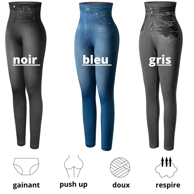 comme le lycra, le nylon et le polyester. Les leggings en jeans