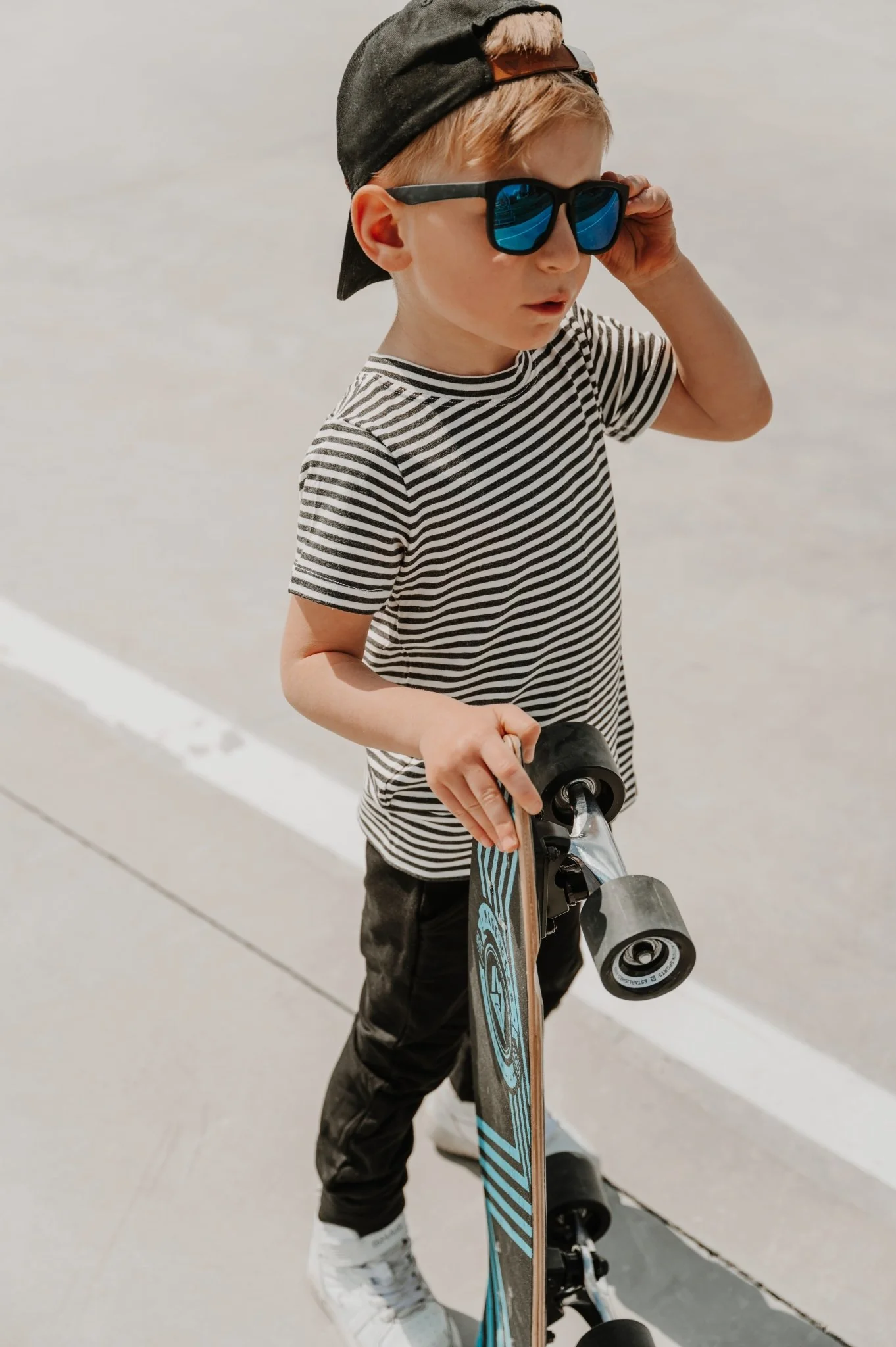 Pantalon évolutif noir style jogger en bambou pour enfant, grandeurs 0 à 6 ans.