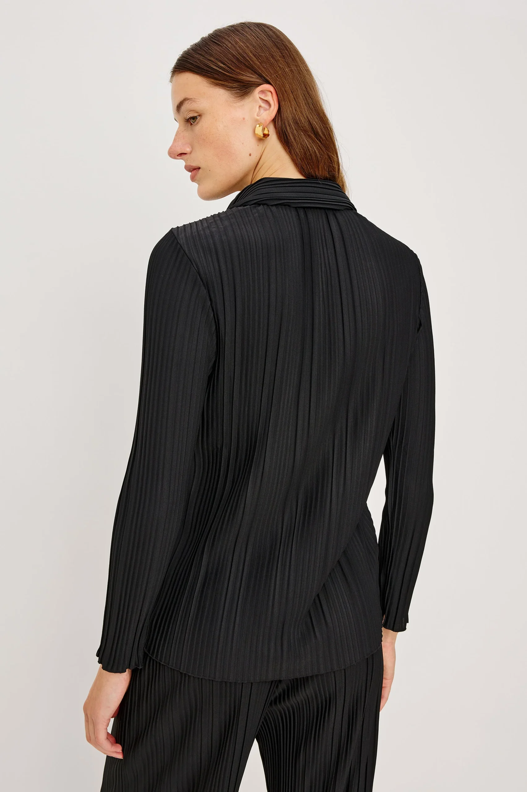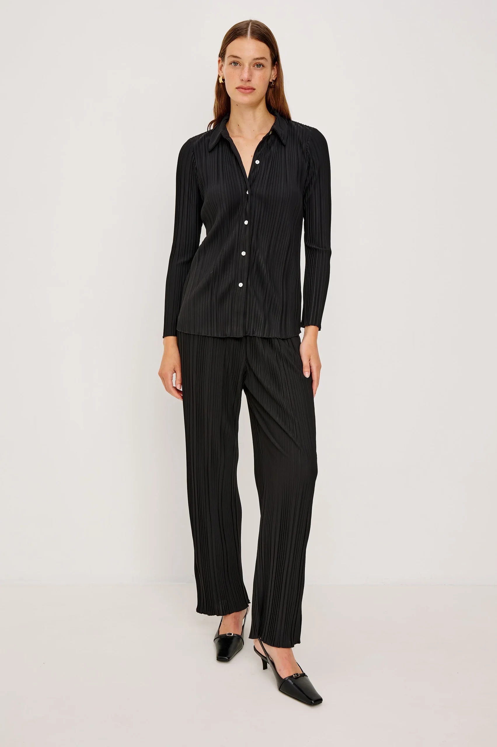 DETAILSCrafted from heavy plisse, this shirt has an oversized fit, classic collar, and full-length sleeve. The Raya is finished with natural shell buttons, elevating the traditional button-down to a day-to-night essential. 100% PolyesterImported. CAREDry clean only. Do not iron. FITRecommend ordering true to sizeFront Body Length: 27 1/2″Model is wearing size Small.