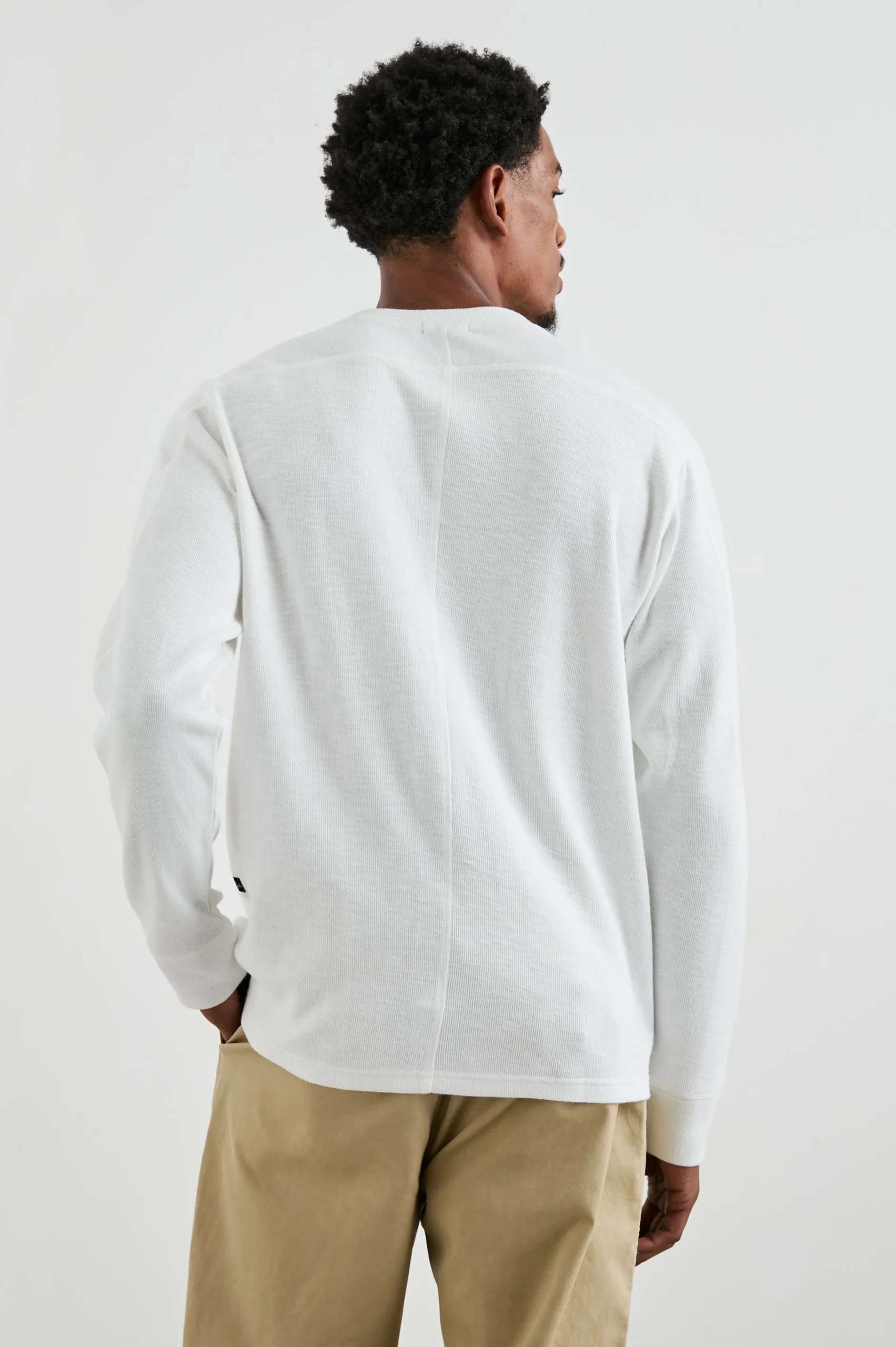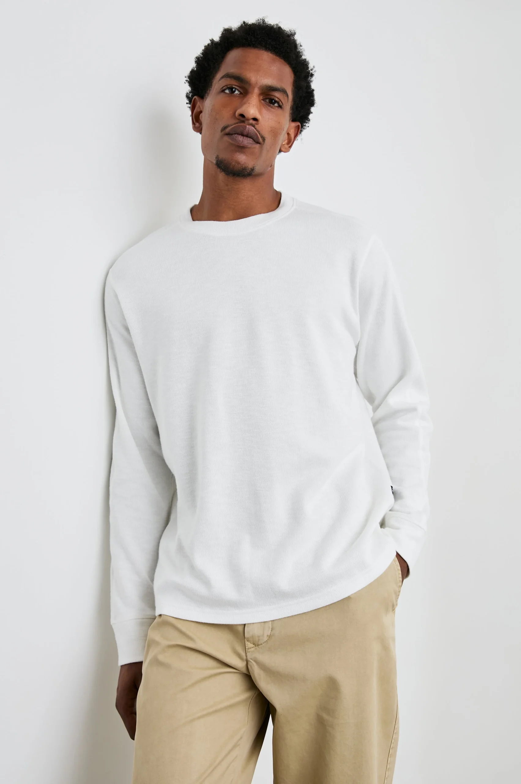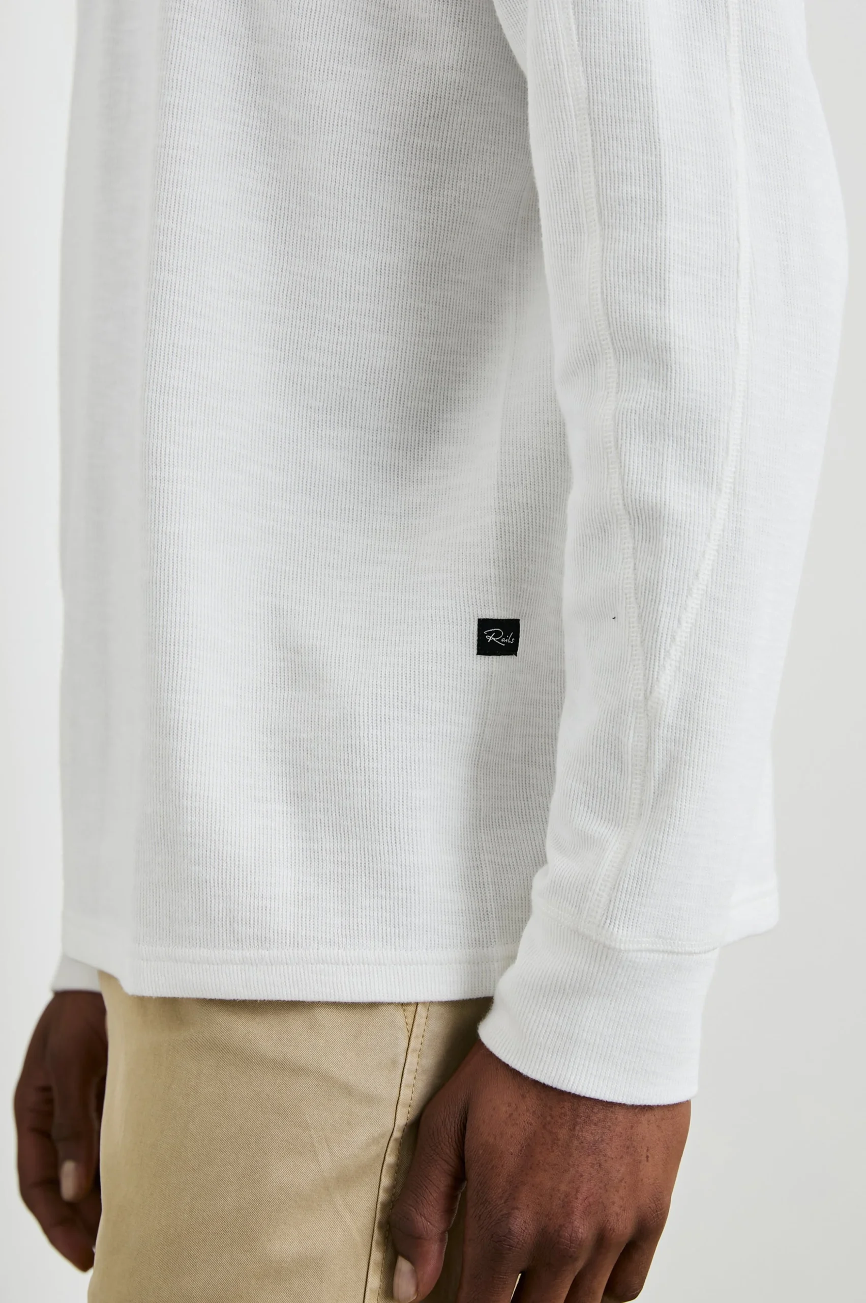 Rheese is the perfect lightweight layer. It’s cut from ultra-soft french rib, and is a more elevated take on the everyday thermal. Dress is up with slacks or keep it casual with sweatpants.
