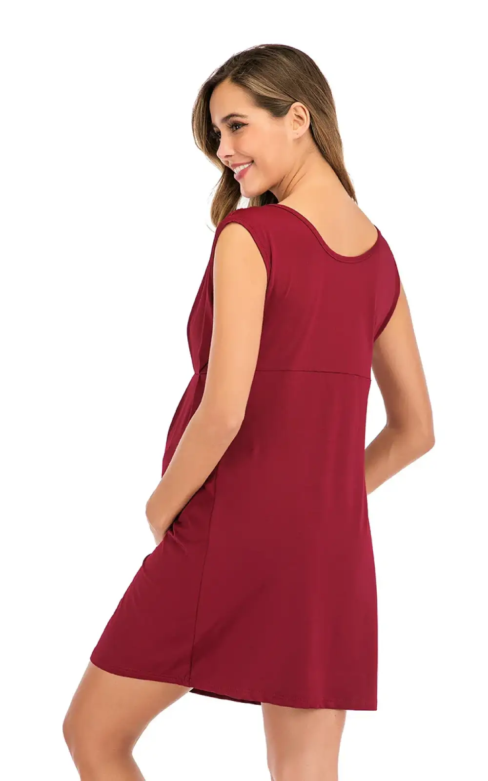 Robe de Grossesse Habillée Manche Courte Unie – Confortable, Élégante et Pratique