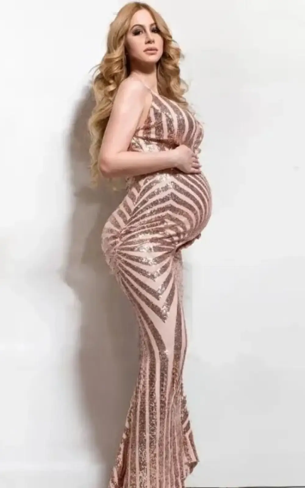 Robe de Soirée Grossesse à Bretelle Longue Paillettes – Une Tenue Élégante et Confortable Pour Votre Grossesse