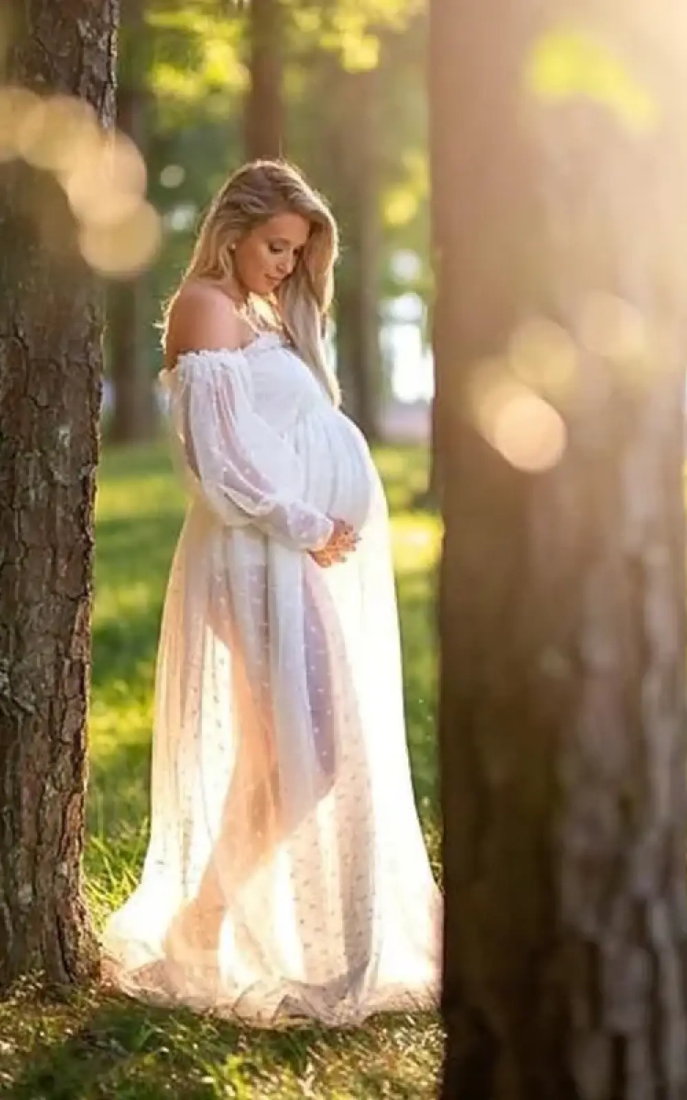 Robe Tulle Shooting Grossesse Pois Blanc – La robe de maternité parfaite pour une séance photo inoubliable!