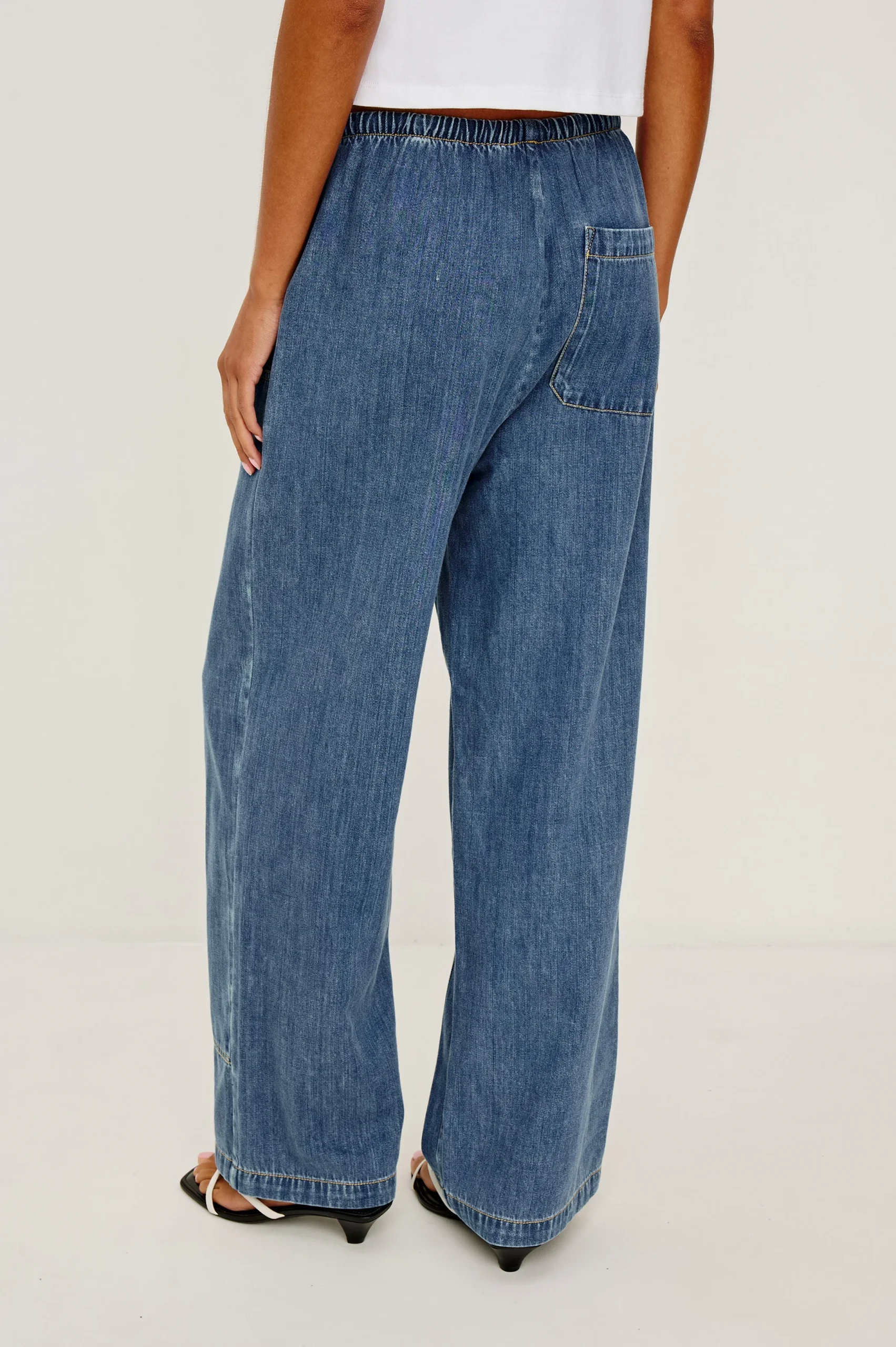 The Sanderson is a mid-rise, relaxed fit denim pant crafted from lightweight, supple cotton. Featuring carpenter panels for a laid-back look and an adjustable corded drawstring for a customized fit.