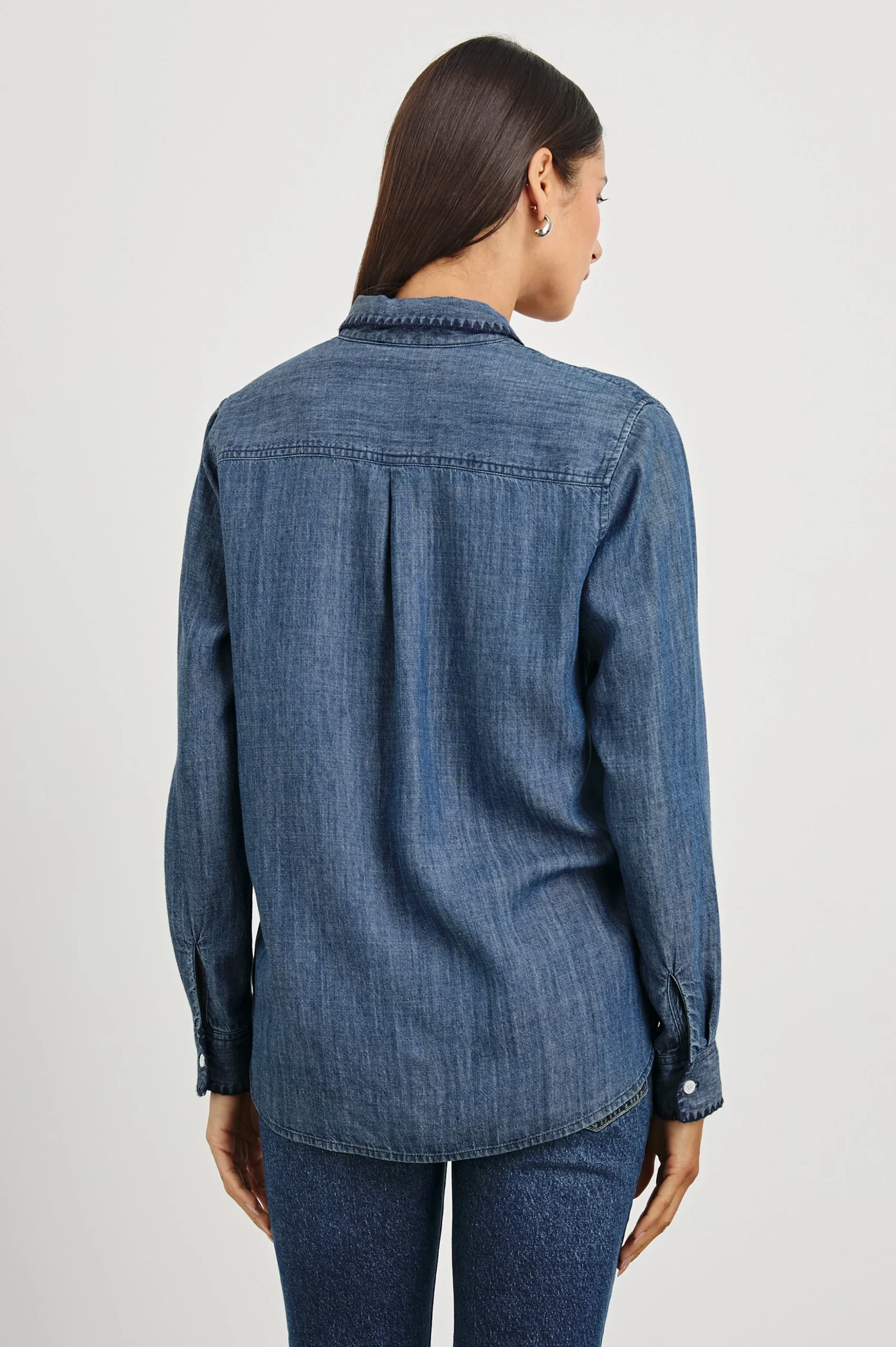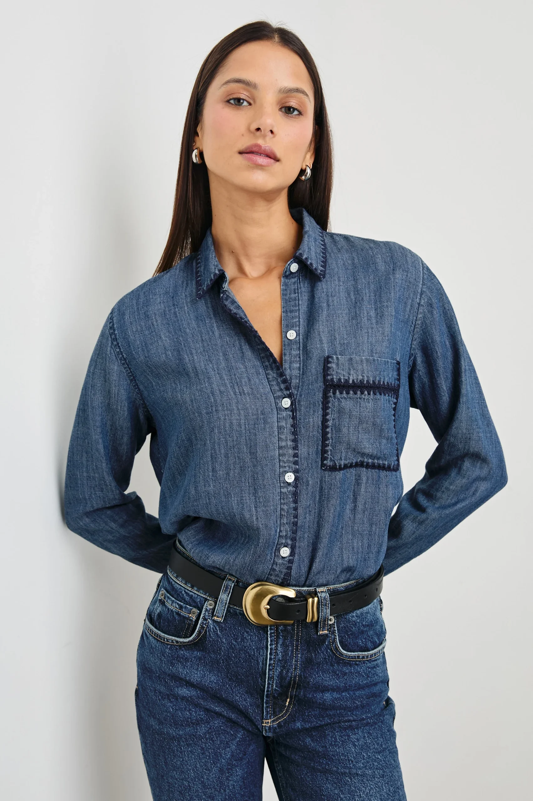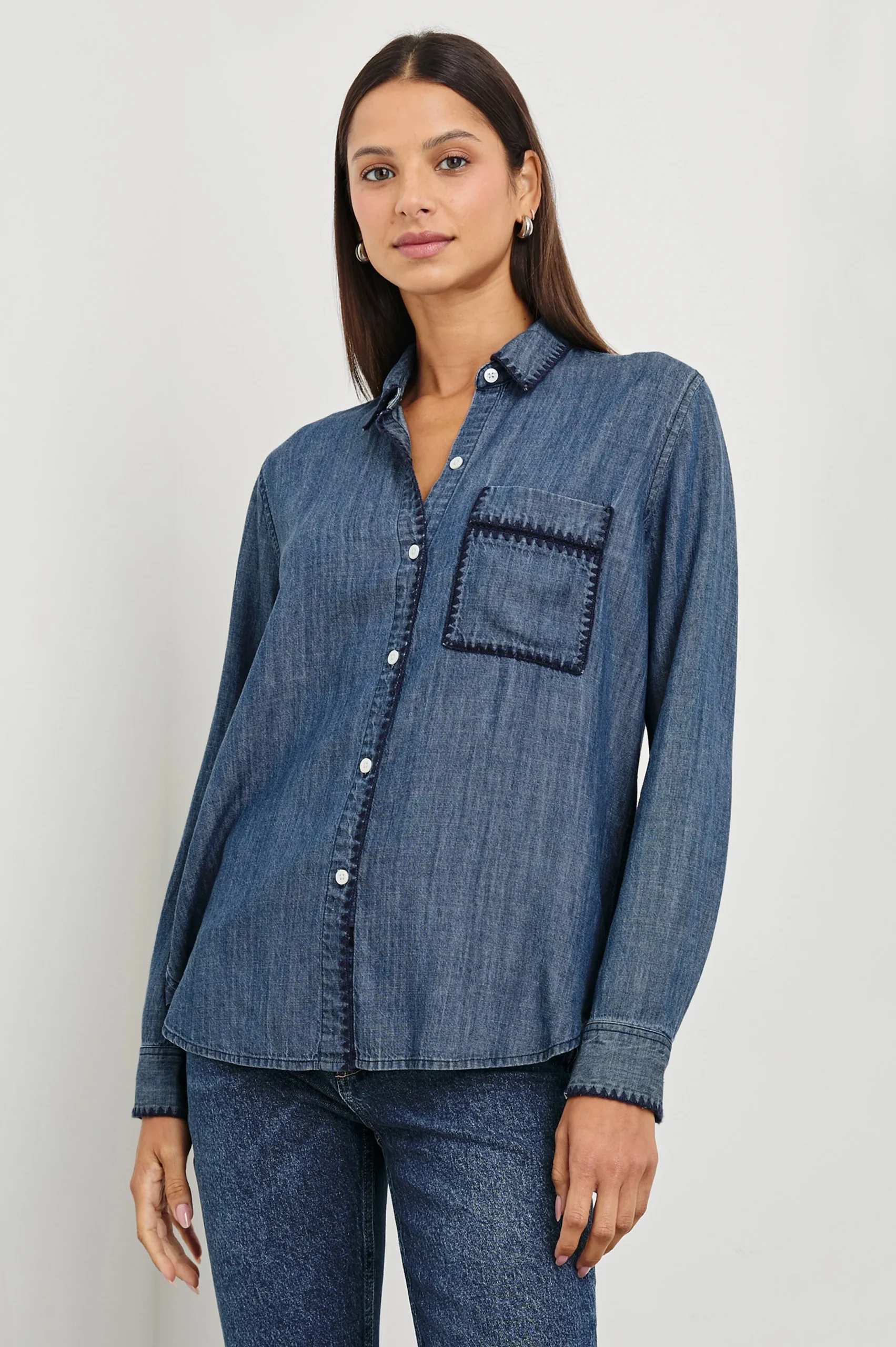 The Saya is an ultra-soft, versatile tencil denim shirt. The contrast blanket stitching along the seams adds subtle yet stylish flair, while a soft hand feel promises all-day comfort. Wear open, buttoned, or tucked in for everyday wear.