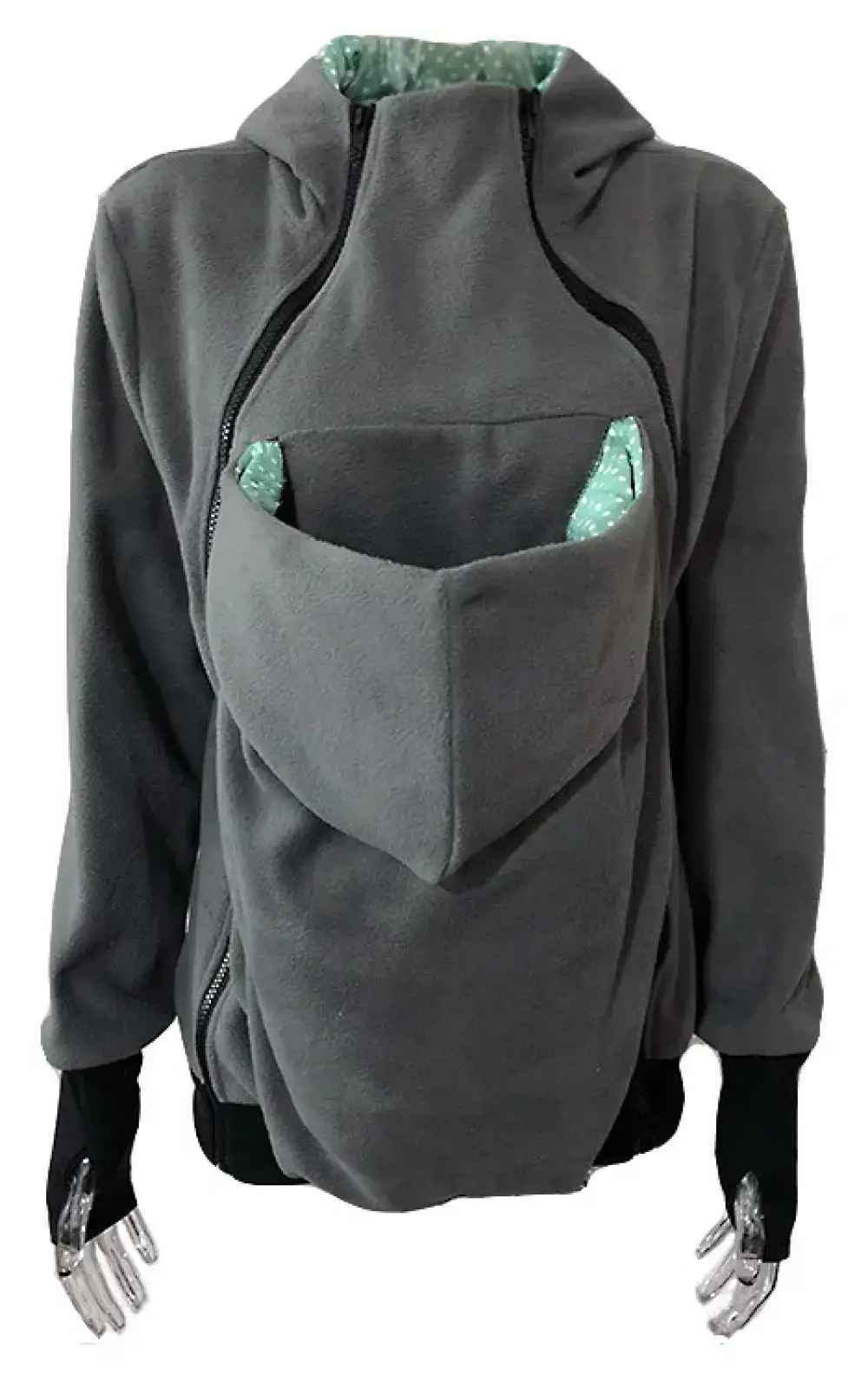 - Un sweat à capuche mère kangourou: un sac de couchage pour bébé amovible 3 en 1 – Un vêtement polyvalent qui peut être utilisé comme un sweat à capuche classique, une veste de portage pratique et un sac de couchage pour bébé, tout en un.