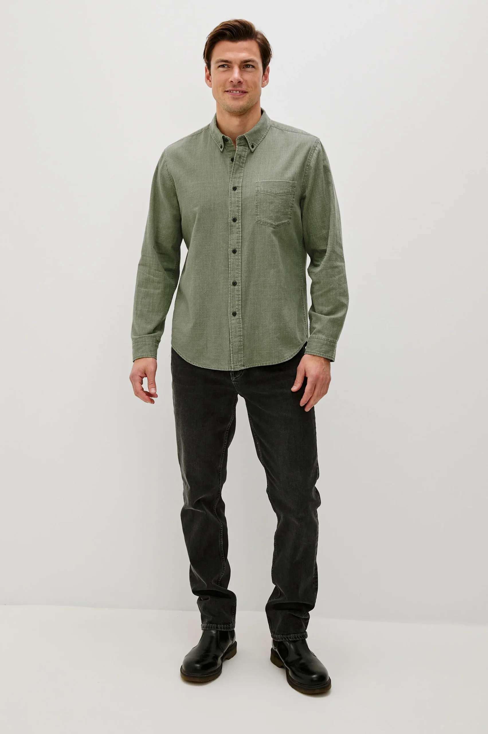 Woven from 100% rope-dyed cotton, the Tristan shirt features a washed effect that creates a subtle two-tone appearance and a rugged, vintage feel. It’s finished with a single patch pocket for added convenience.