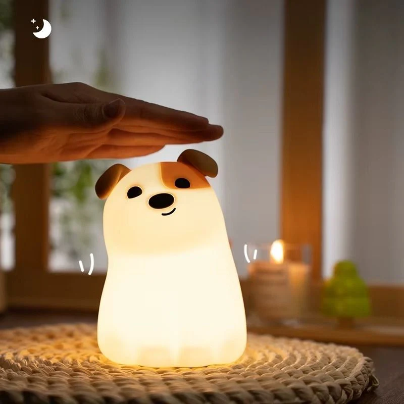 🐶 Design chiot rassurant : veilleuse en silicone doux, sûre, non toxique et agréable au toucher. Facile à manipuler même d’une main