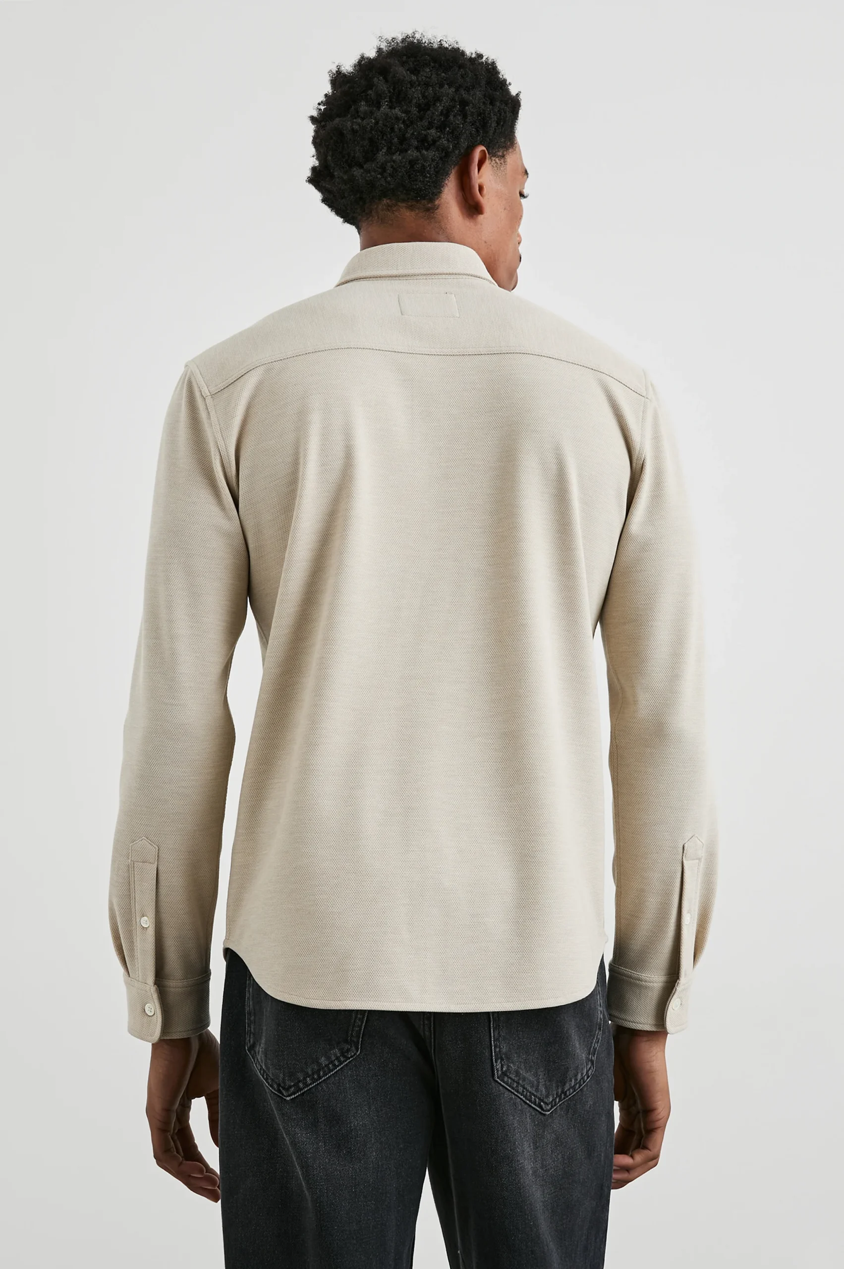 The perfect in-between piece. The Vincent combines the polish of a shirt with the comfort of a knit in a textured, soft-touch pique viscose blend, with a buttoned classic collar, chest patch pocket, front buttons, and long sleeves.