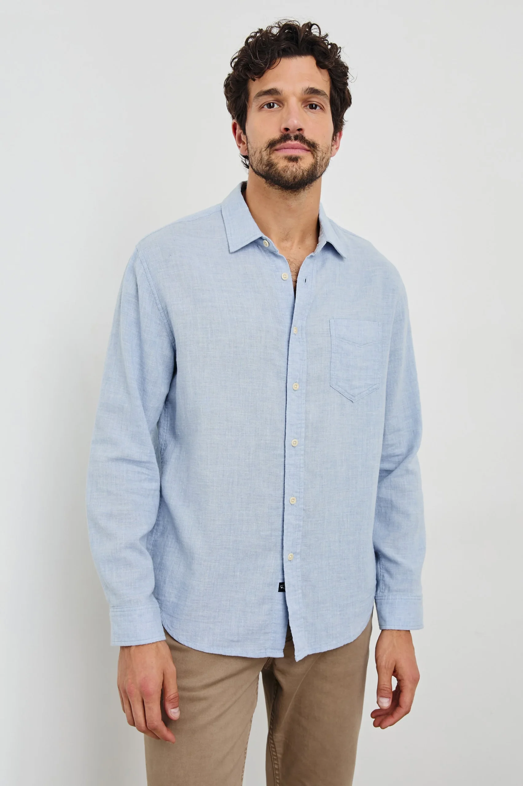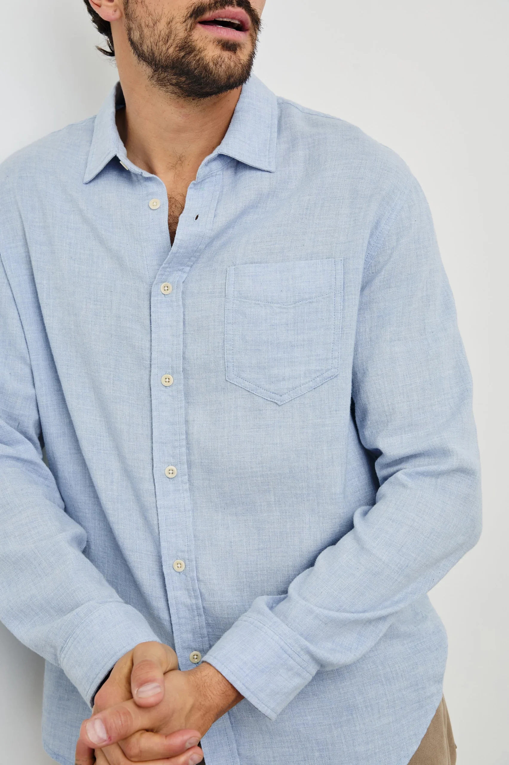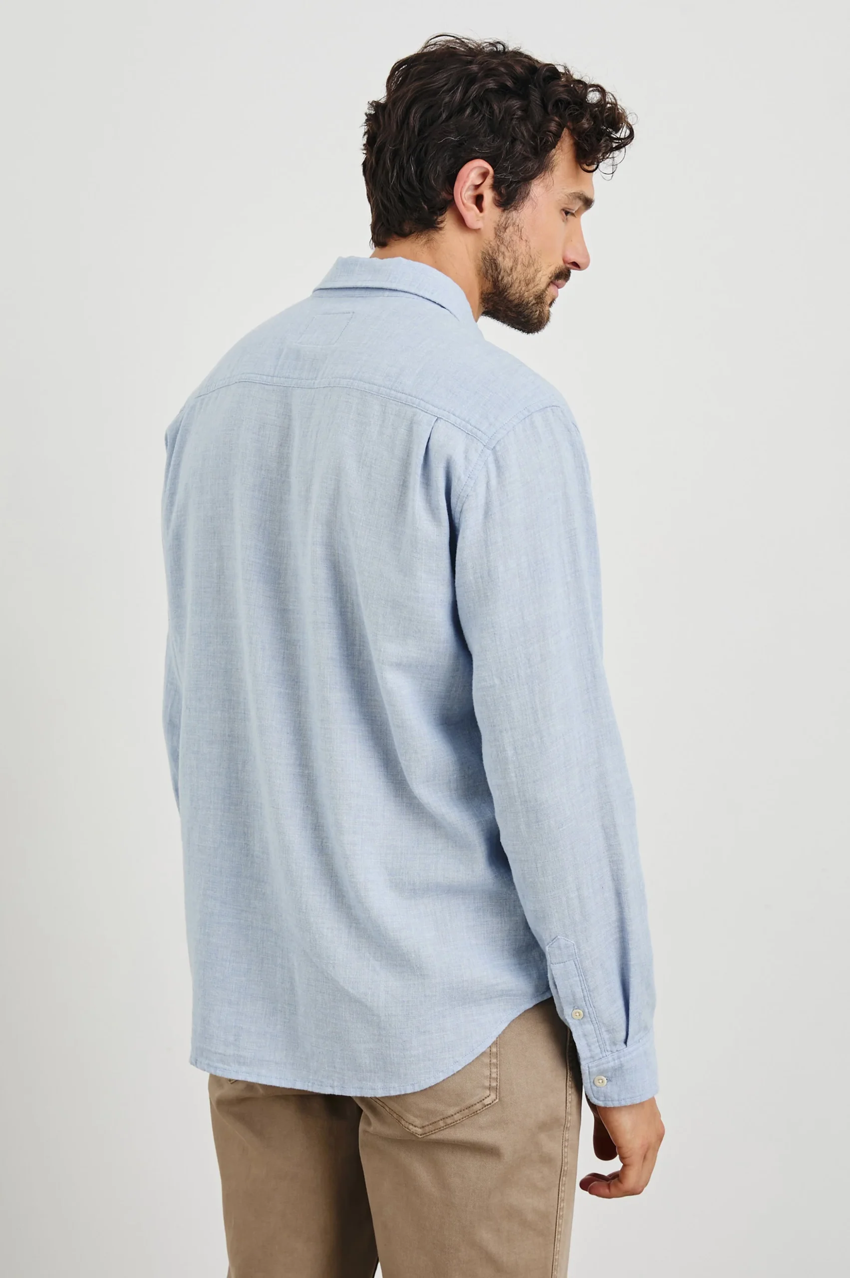 Super soft, breathable cotton fabric mixed with a relaxed body shape makes the Wyatt the perfect Southern California inspired button-down. A classic shirt featuring a single patch pocket at chest.