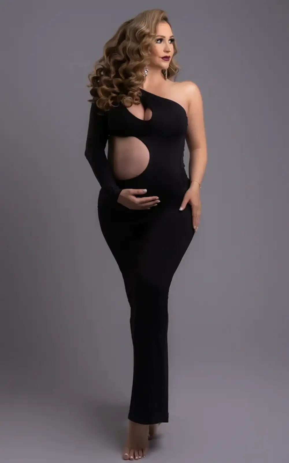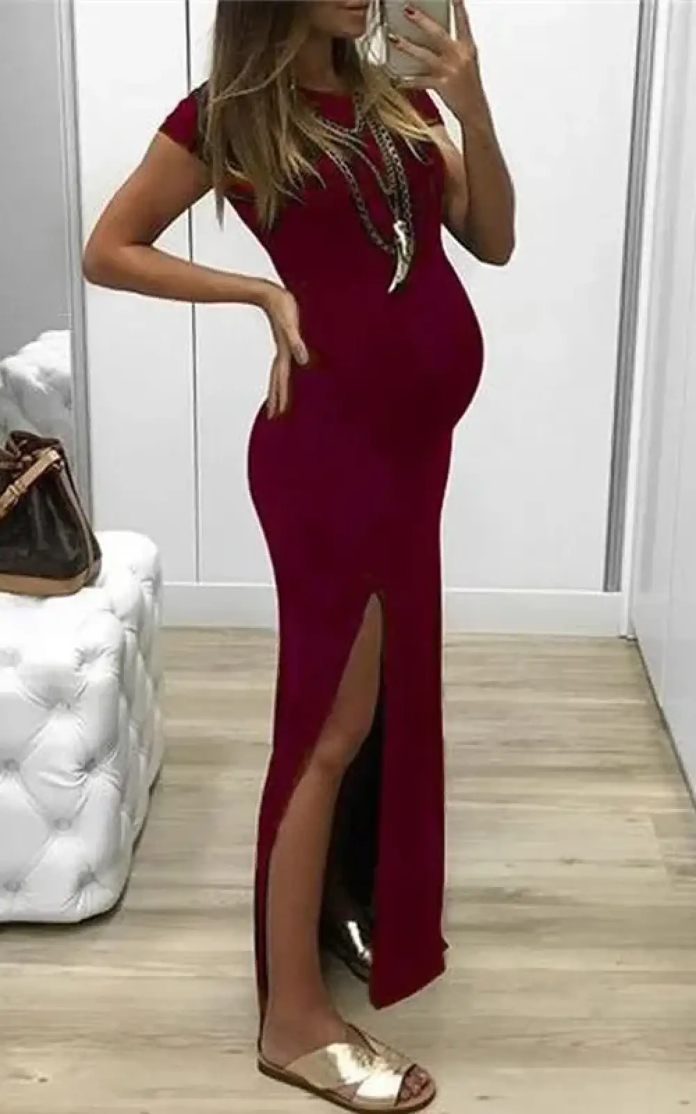 Robe Grossesse Habillée Col Rond à Manche Courte