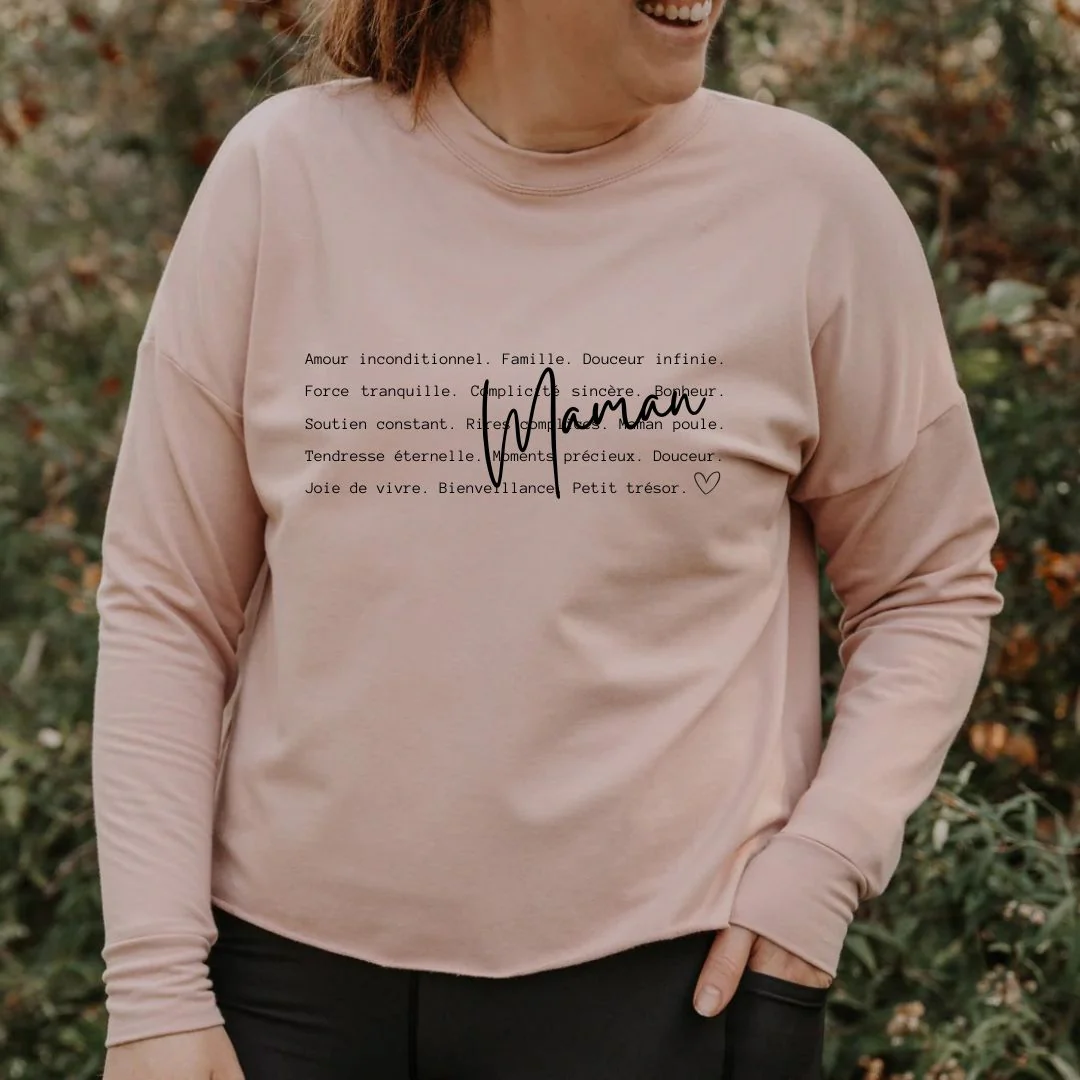 Sweater Mily rose pour femme – Impression UNE MAMAN