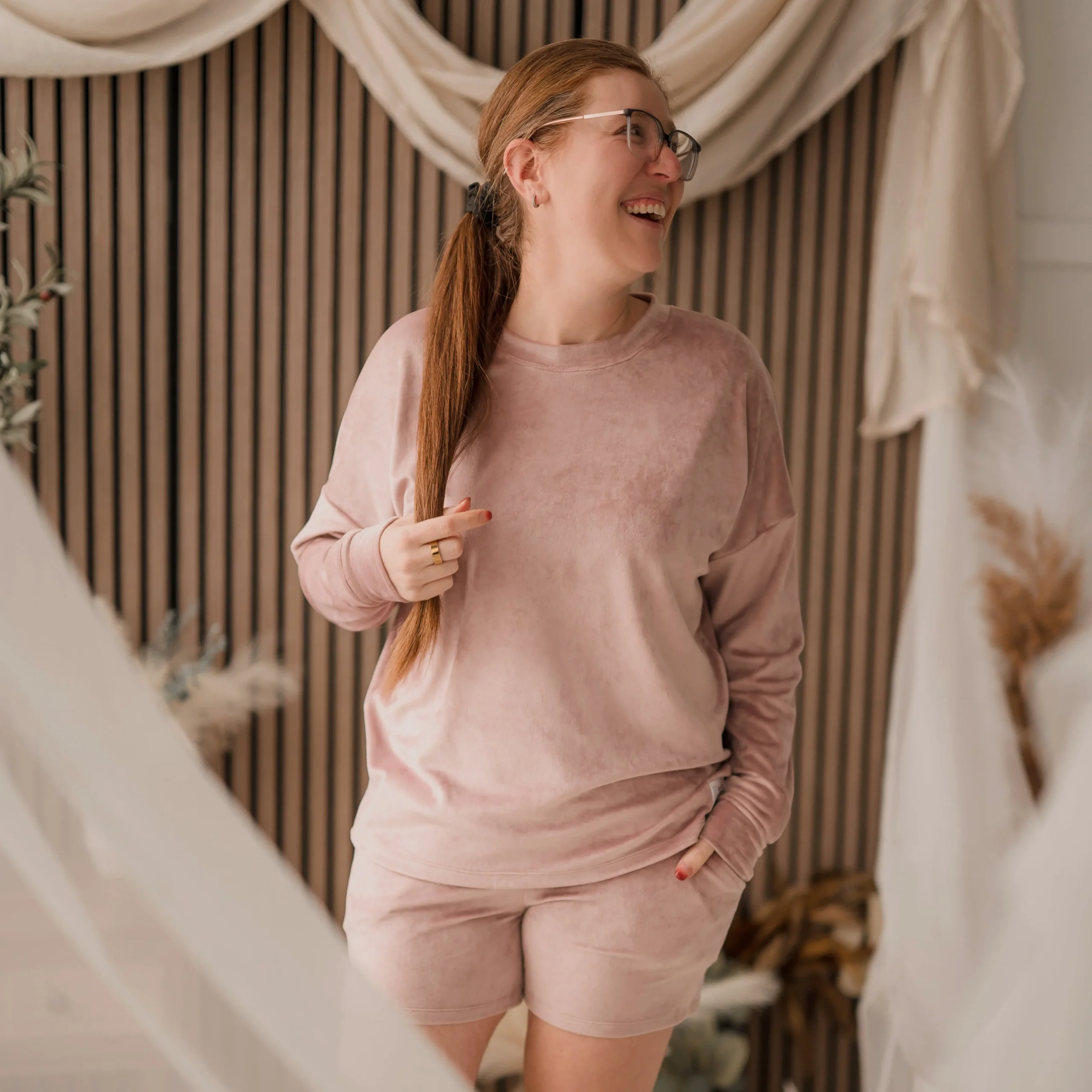 Chandail détente à manche longue rose pour femme, idéal aussi pour la maternité