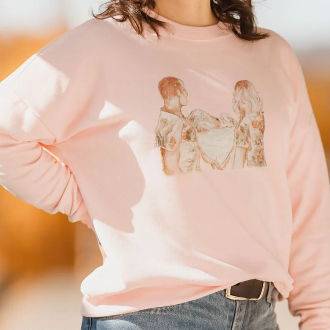 Crewneck pour femme en bambou rose bébé – Impression À la rencontre