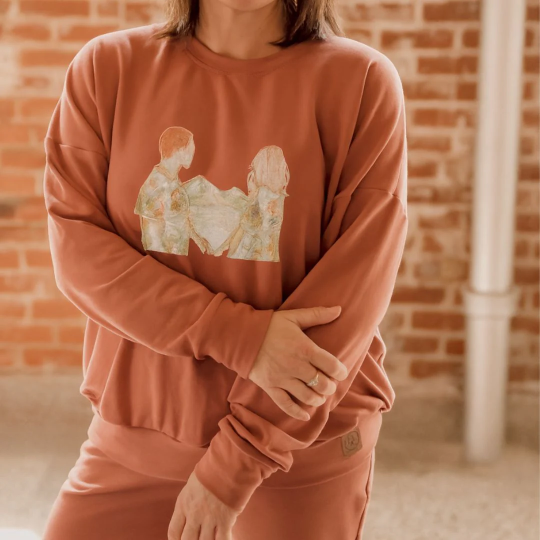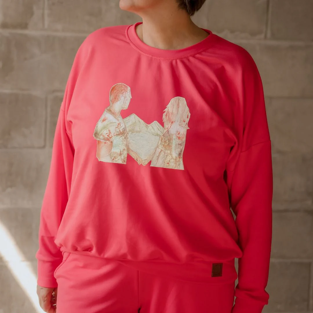 Crewneck pour femme en bambou rose brique – Impression À la rencontre